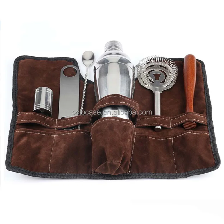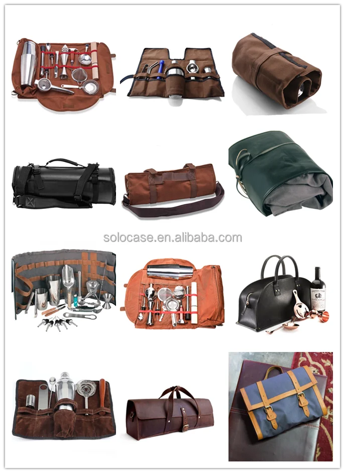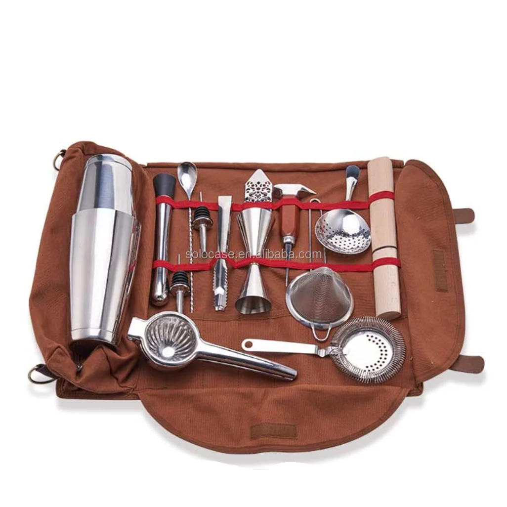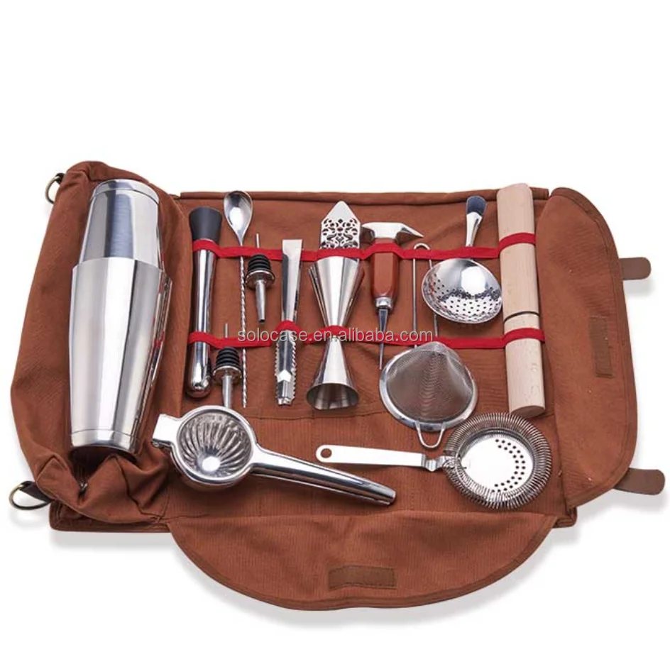 Easy Clean Canvas Roll Bag for Bartender Kit Tool Storage in Home Bar