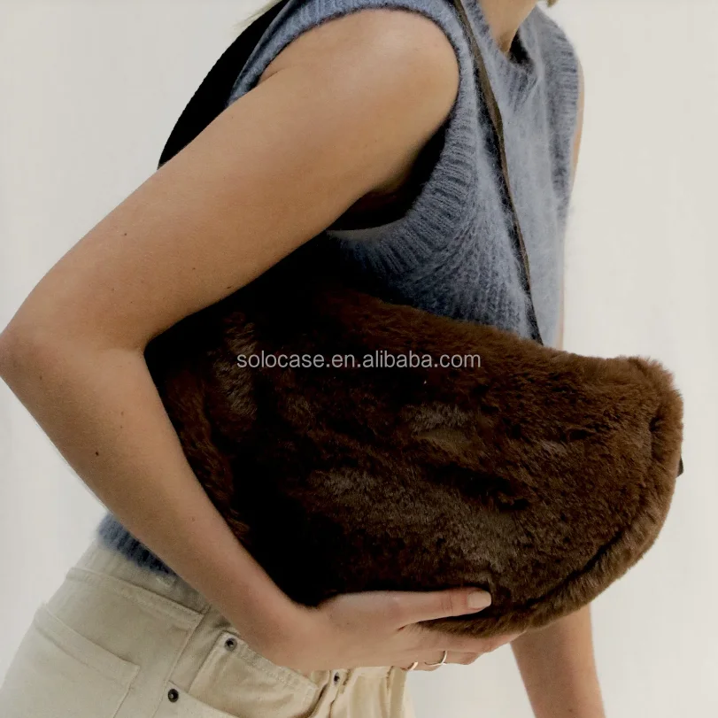 Fashion Faux Rabbit Fur Waist Bag, Winter Fluffy Fanny Pack, Soft Plush Crossbody Chest Bag