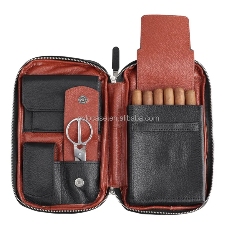 Genuine Full-Grain Cow Hide Leather Cigar Case Special Purpose Bags & Cases for 5 Cigars
