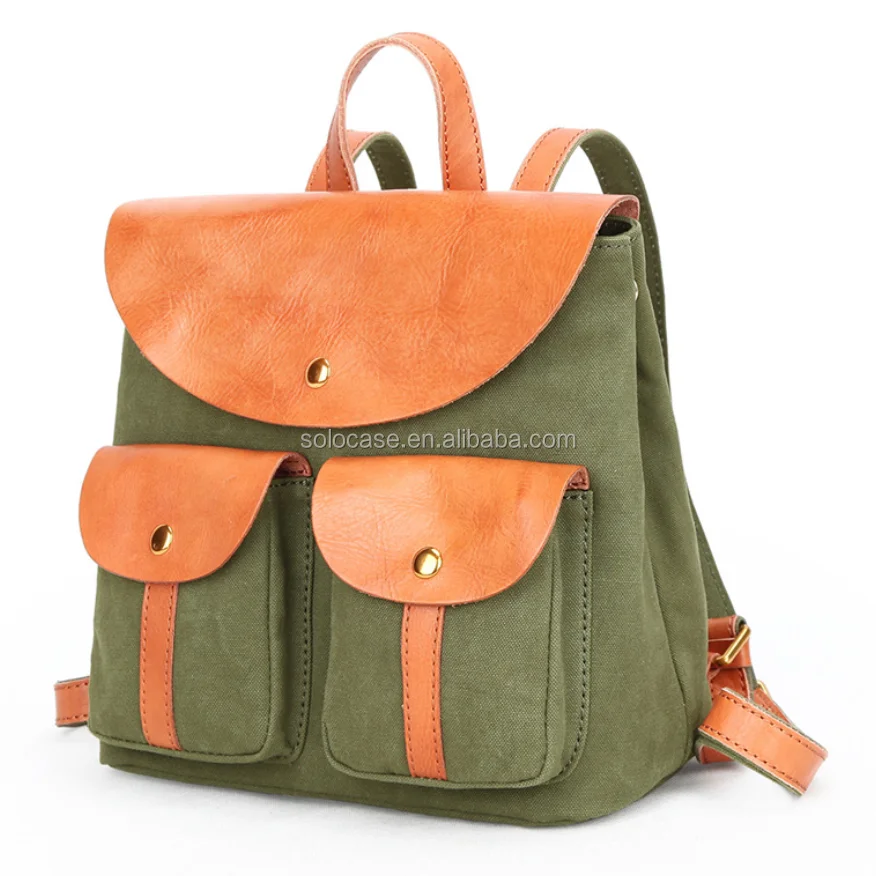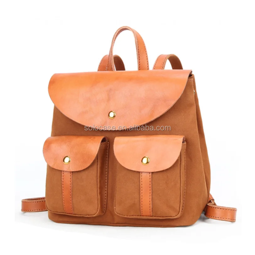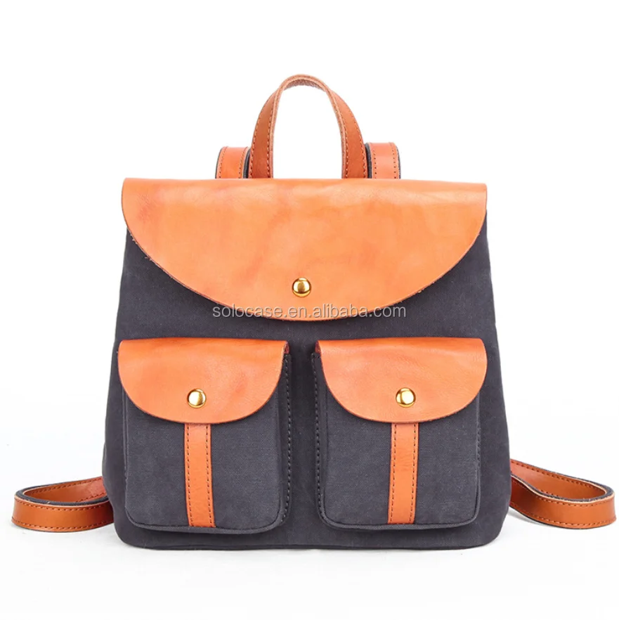 Vintage Canvas and Genuine Leather Women’s Backpack Stylish Travel Rucksack