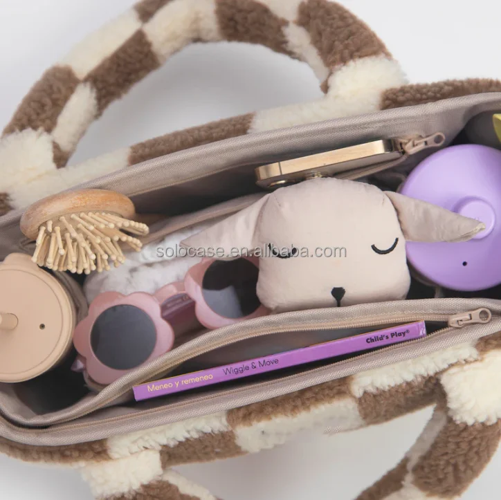 New Design Winter Teddy Fabric Diaper Bag Women’s Outdoor Mom Handbag