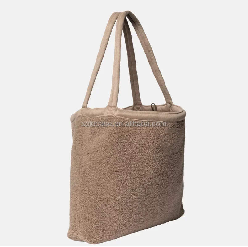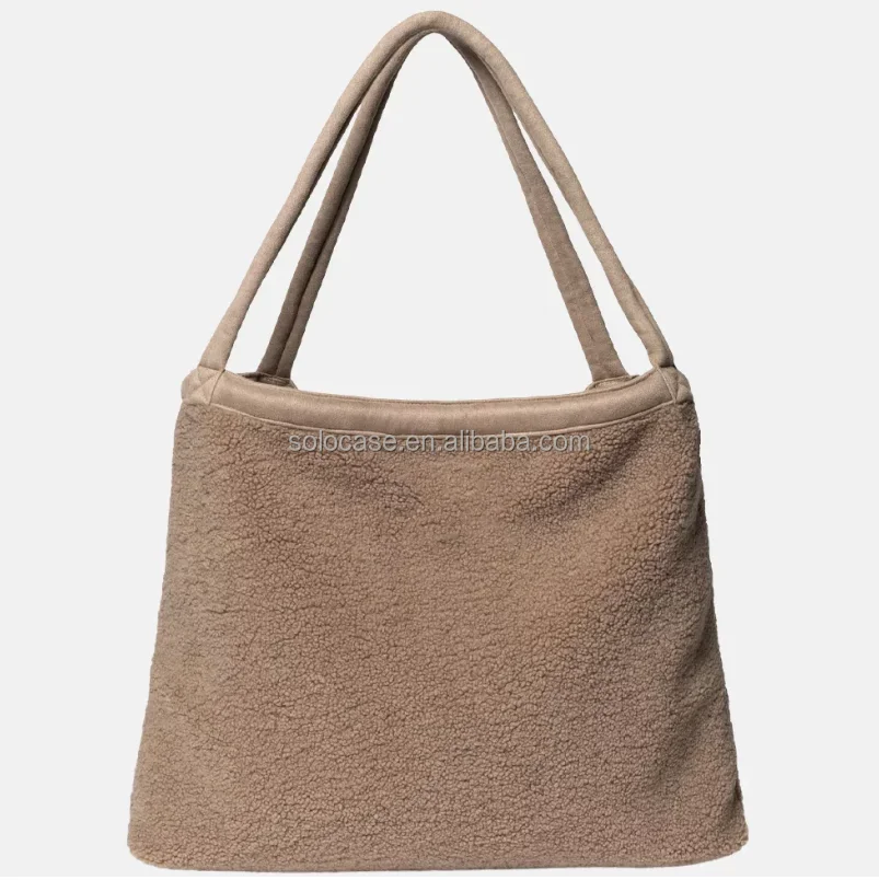 New Style Ladies Teddy Tote Handbag Large Capacity Bride Tote Bag Custom Faux Fur Shoulder Shopping Bag Winter