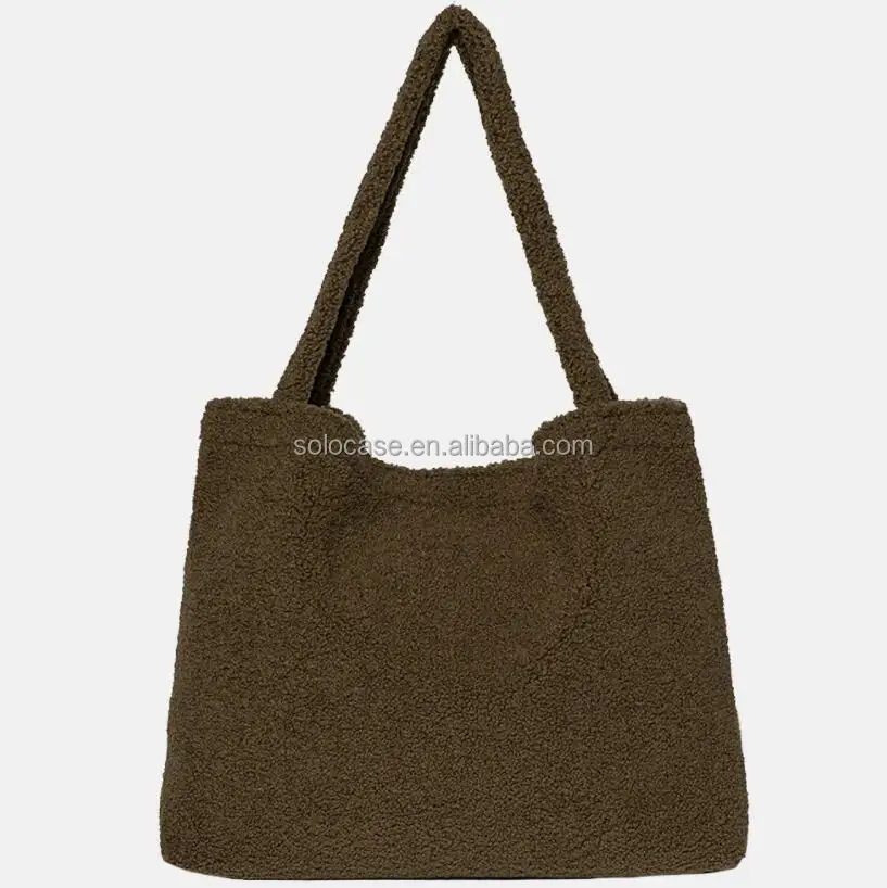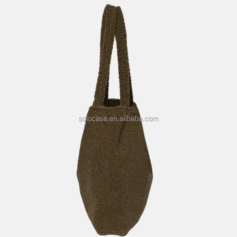 Fashion Teddy Shoulder Handbags Big Capacity Shopping Trendy Towel Fabric Bags