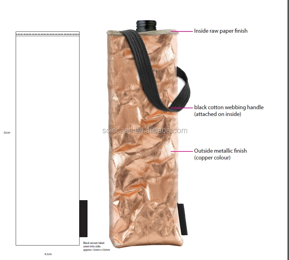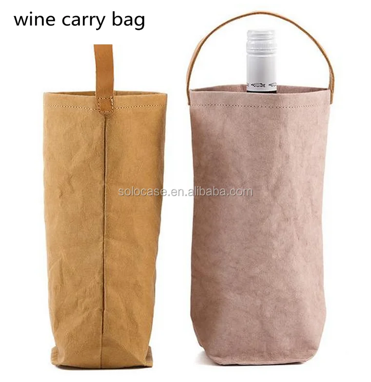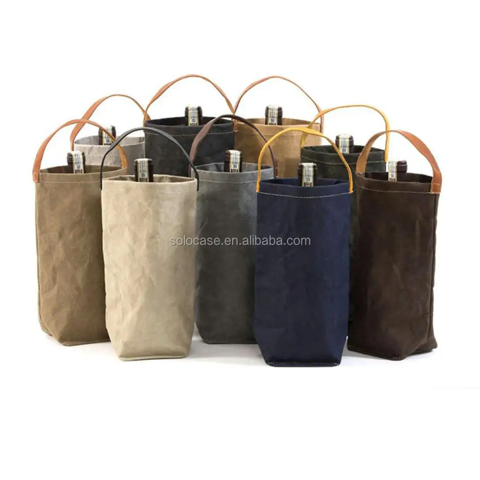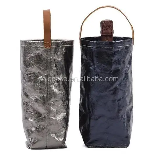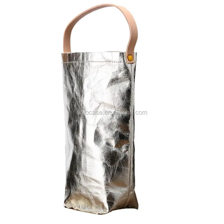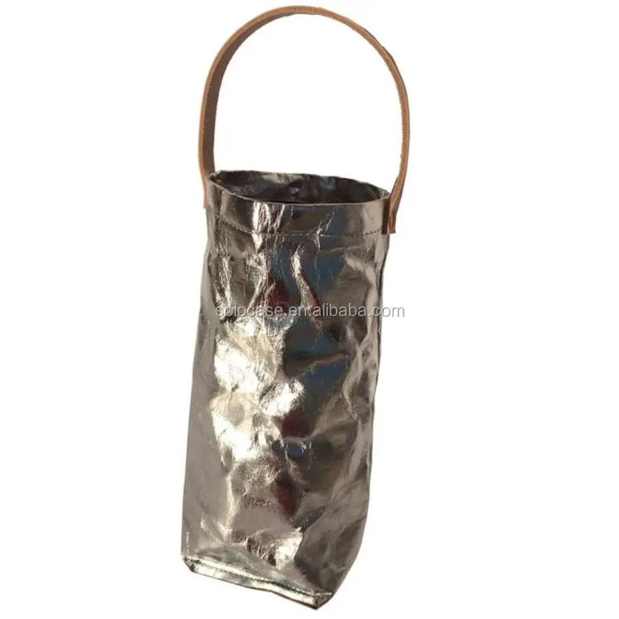 Washable Kraft Paper Wine Cooler Bag in Metallic Silver Tote Bag Style
