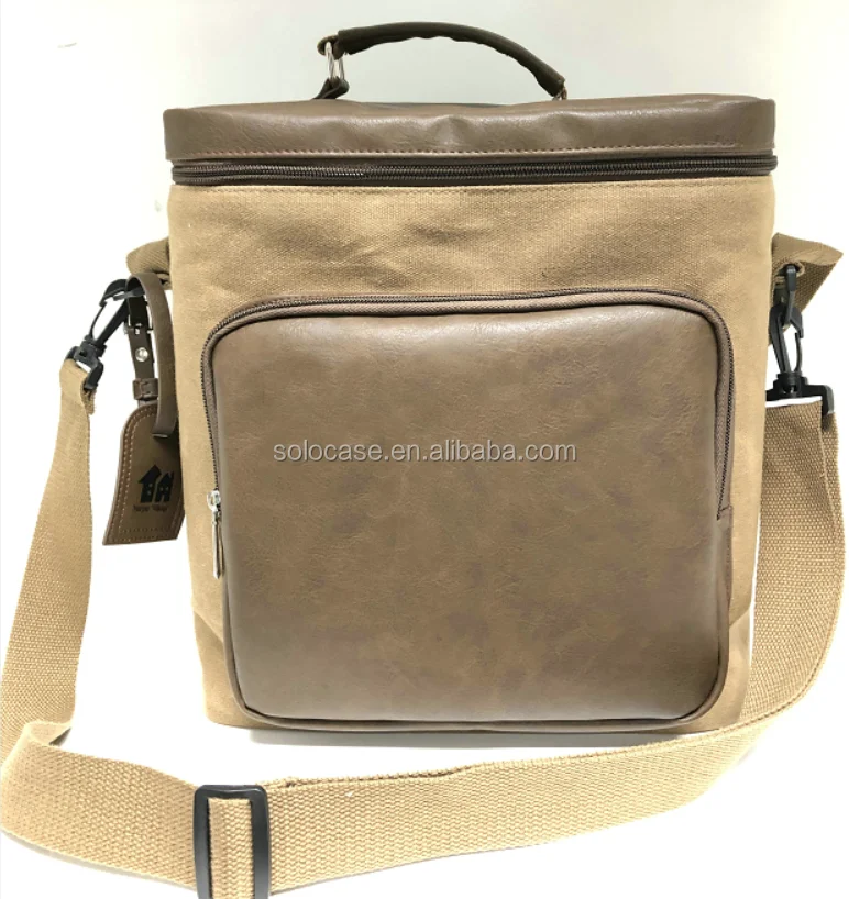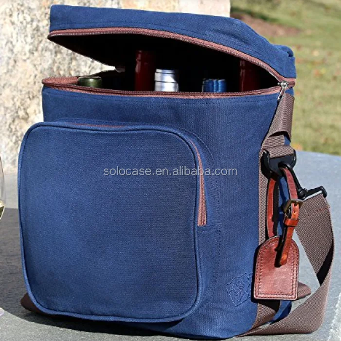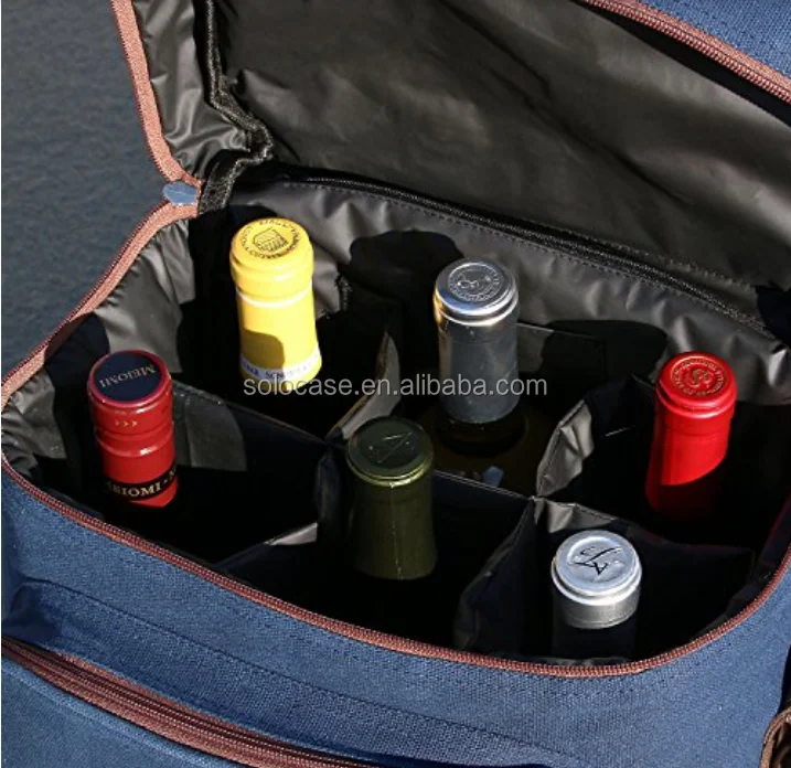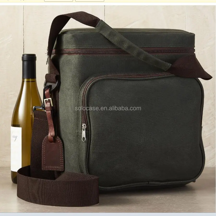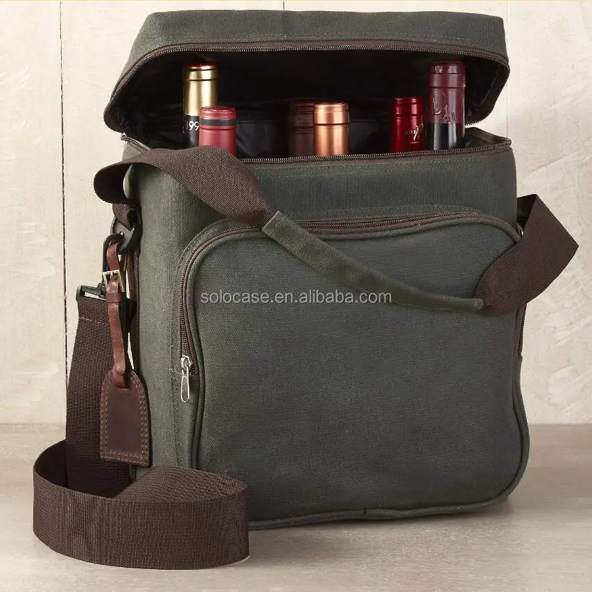 OEM Top Quality Travel Insulated Tote 6 Bottle Leather Wine Luxury Weekender Bag with Shoulder Strap