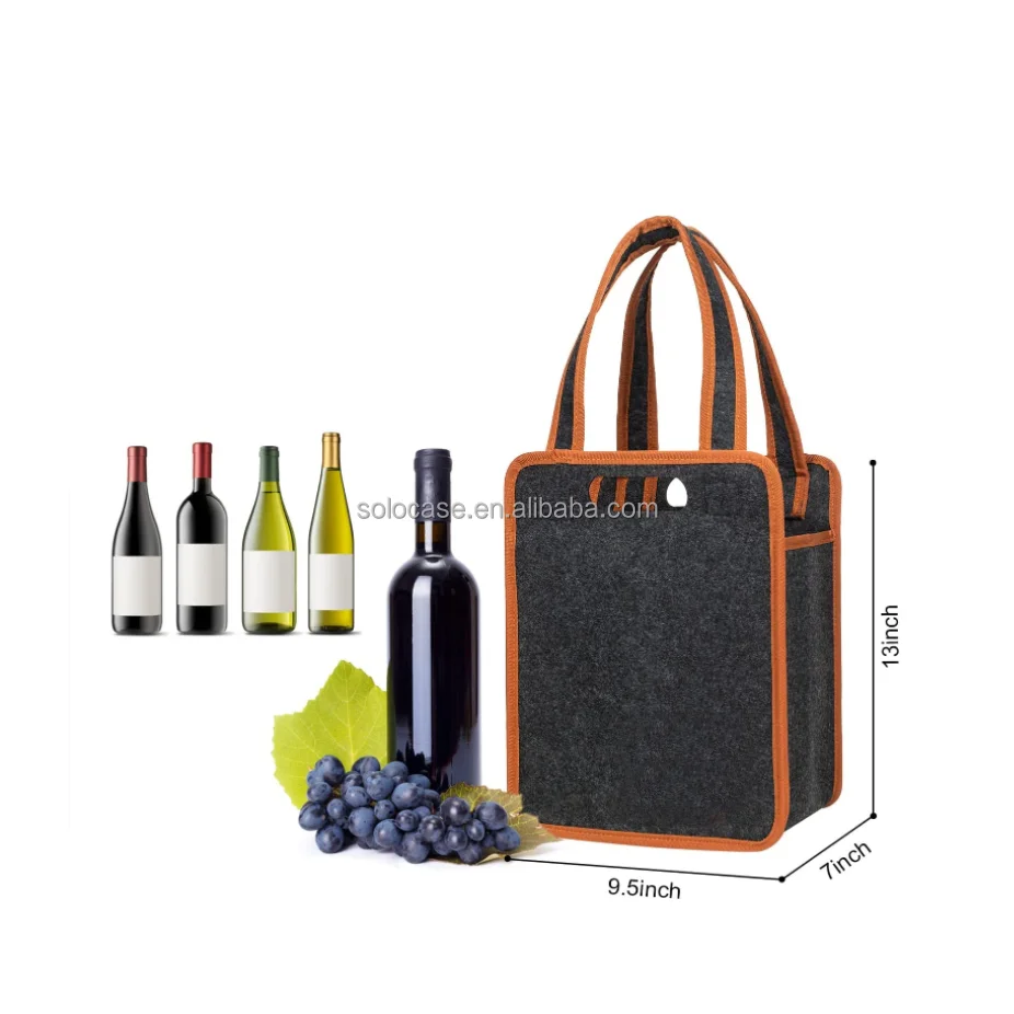 WooFelt Insulated Thermal Padded 6-Bottle Wine Carrier Tote Premium Cooler Bags for Wine Storage and Transportation