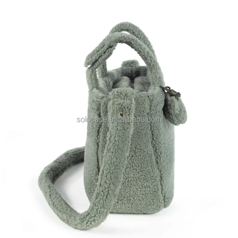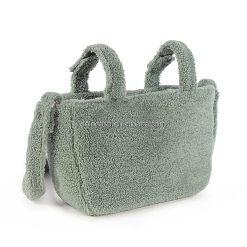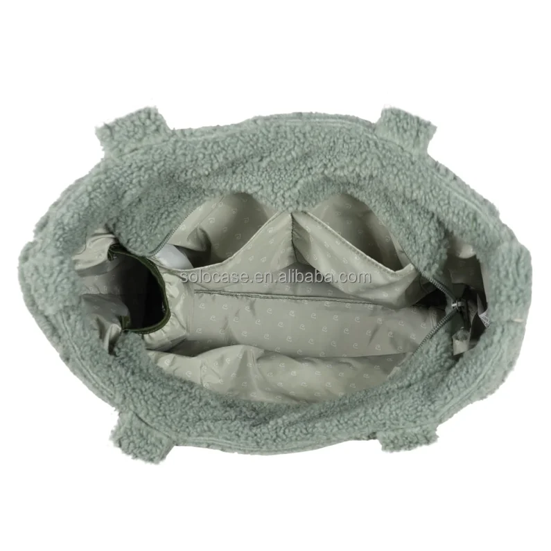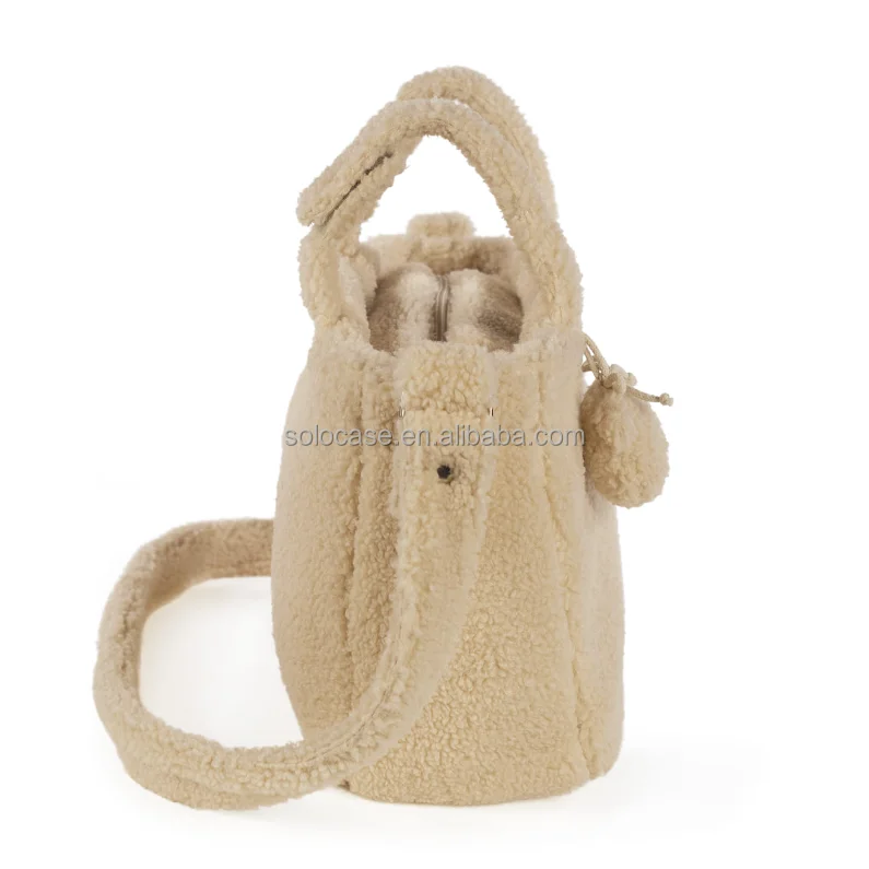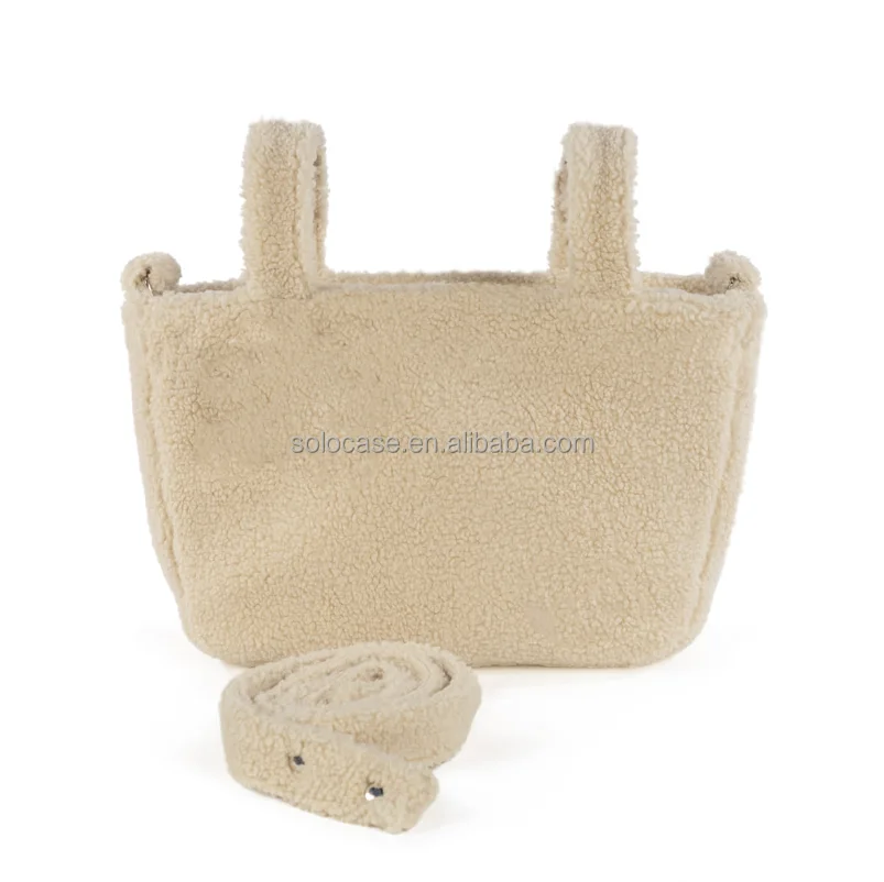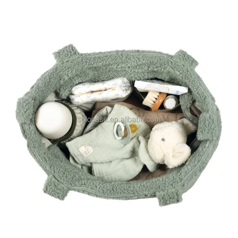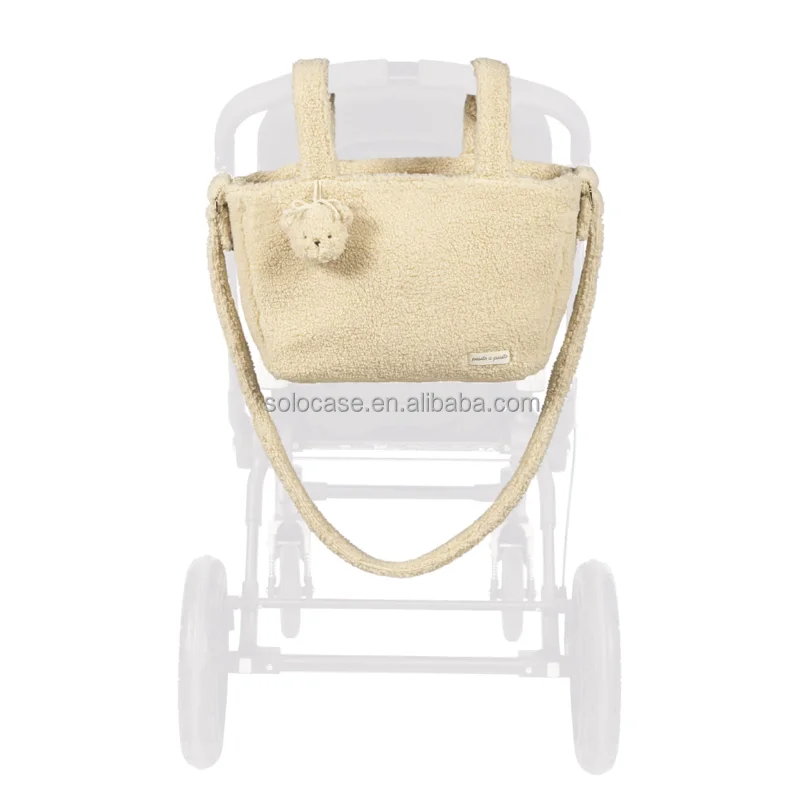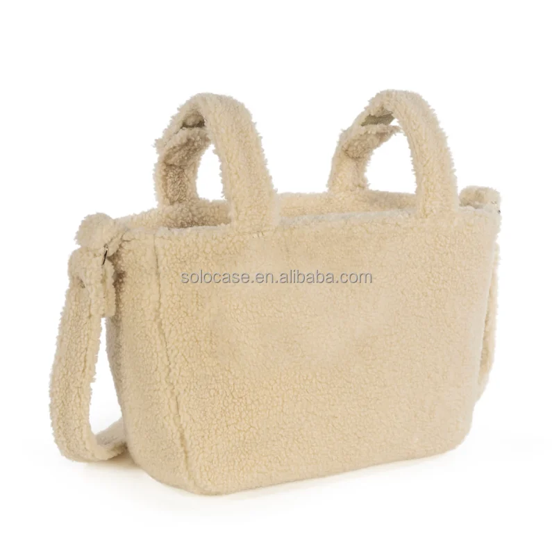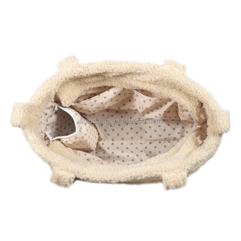 Beige Teddy Lightweight Puffy Tote Bag Nappy Changing Diaper Bag
