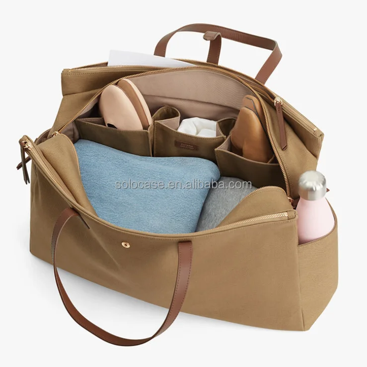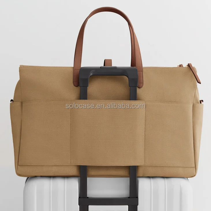 High Quality Duffel Bag with Luggage Handle Sleeve Slides Canvas and Leather Weekend Travel Bag