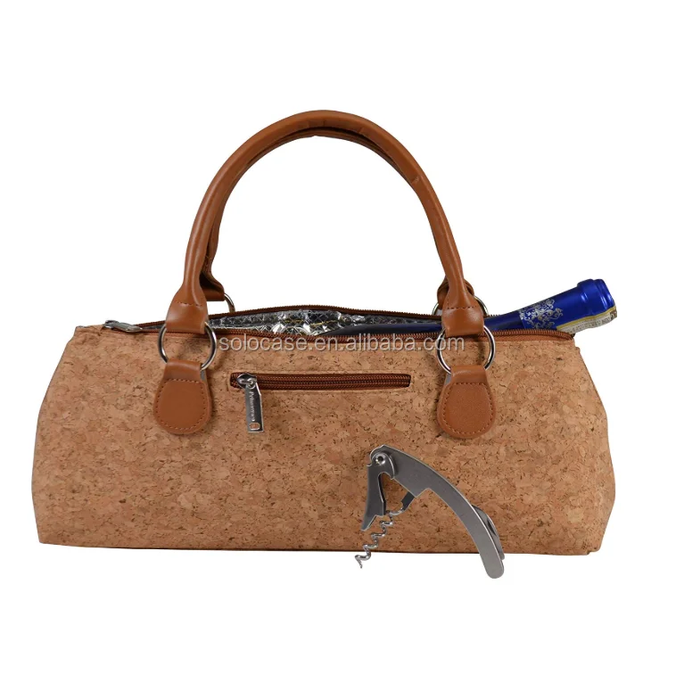 Fully Insulated Wine Clutch Tote Bag Cork Wine Carry Bag