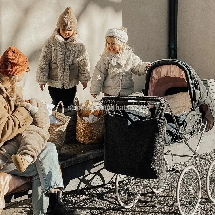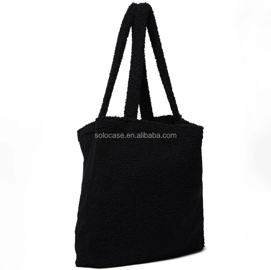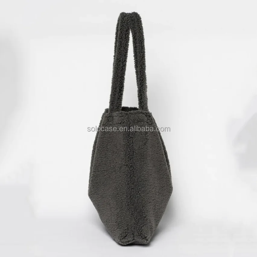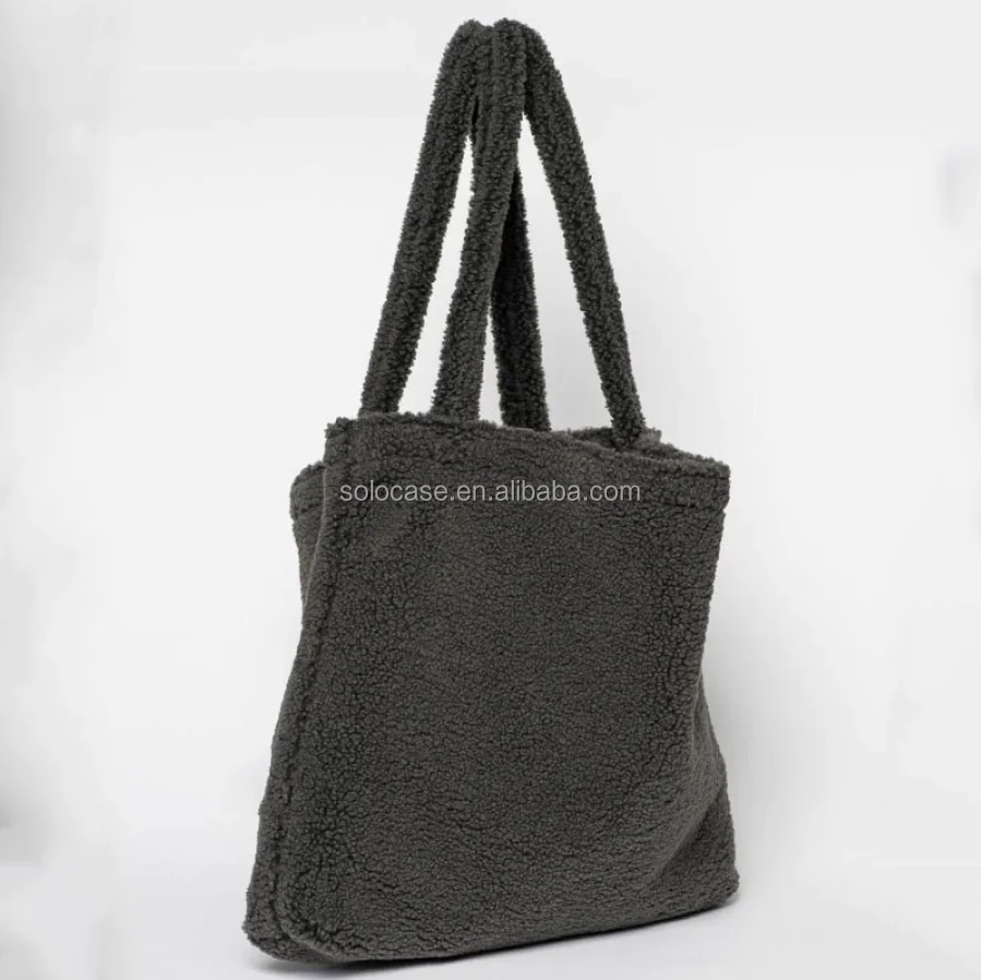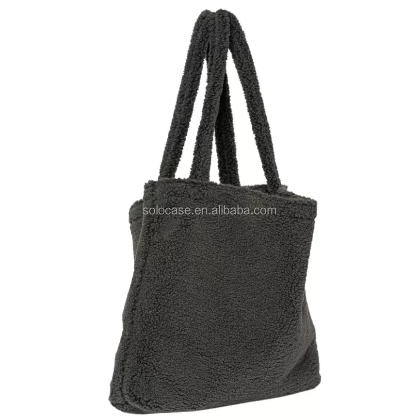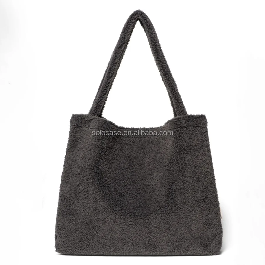 Europe Fashion Winter Women Teddy Mom Bag Cream Fluffy Shopper Tote