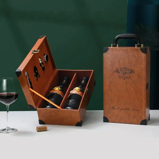 | Product Name | Custom High-grade leather PU wine gift box engraved double red wine packing box with wine set |