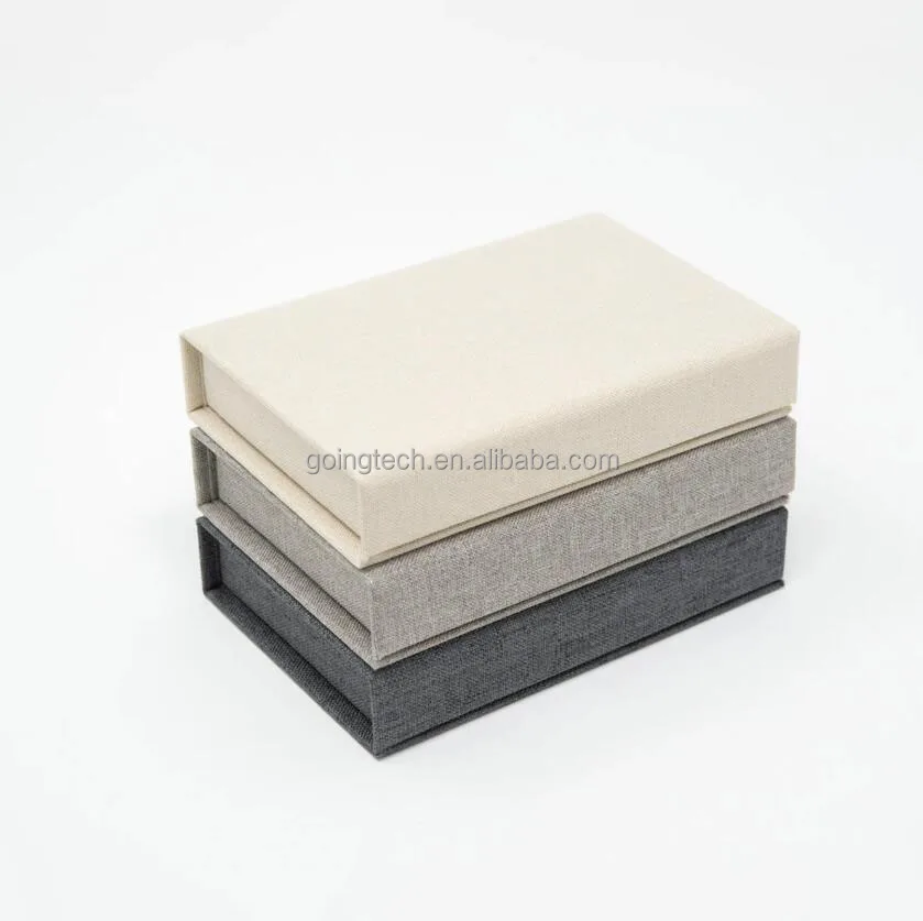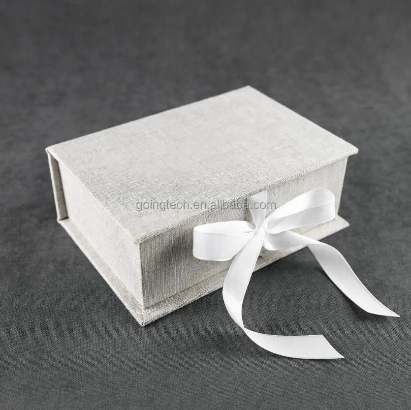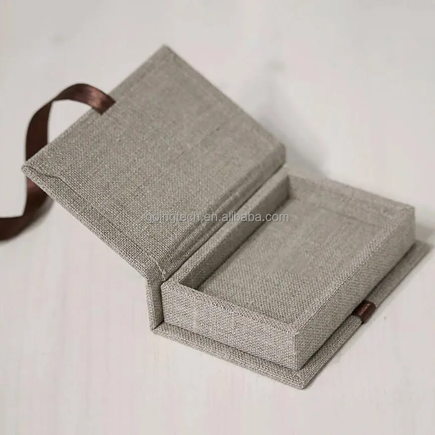 Custom Luxury Linen Cloth Material Book Shape Style Box for Gift Packaging Box with Silk Insert