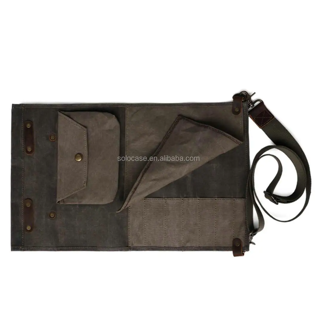 Durable Waxed Canvas Tool Roll Bag Water Resistant Tool Storage Solution