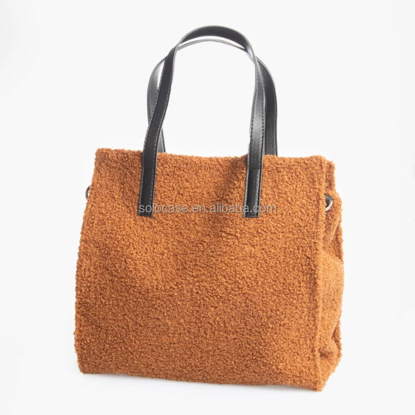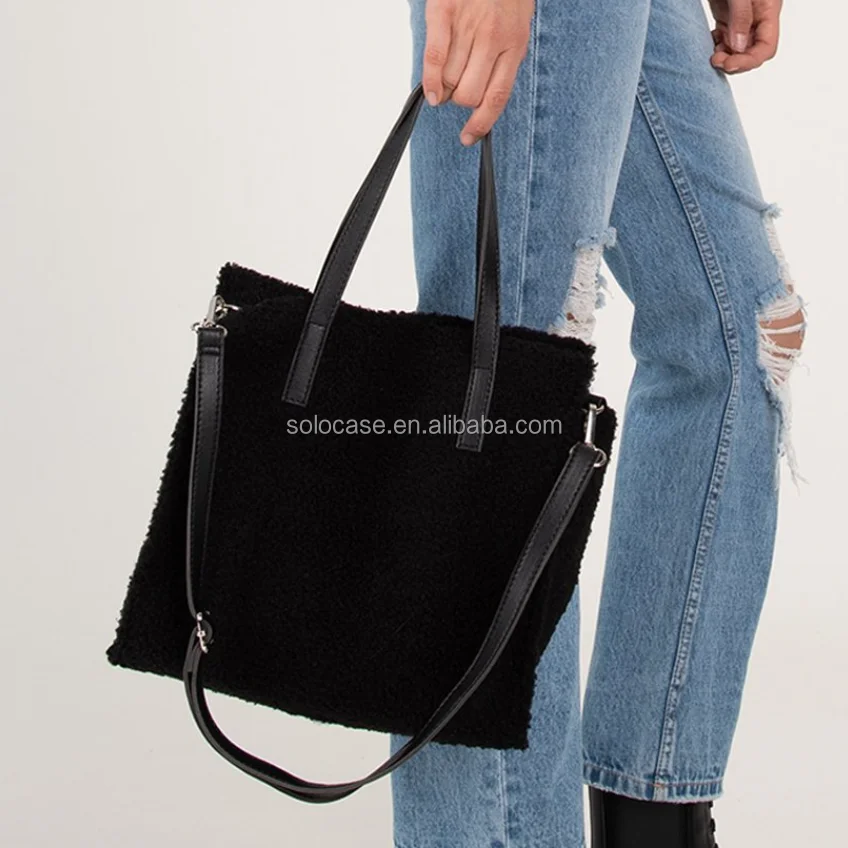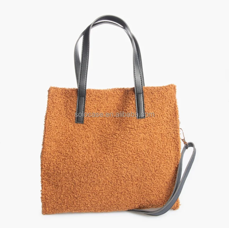Fashion Large Cute Teddy Tote Bag Winter Faux Fur Handbag with Custom Logo for Women Soft Plush Shoulder & Large Capacity