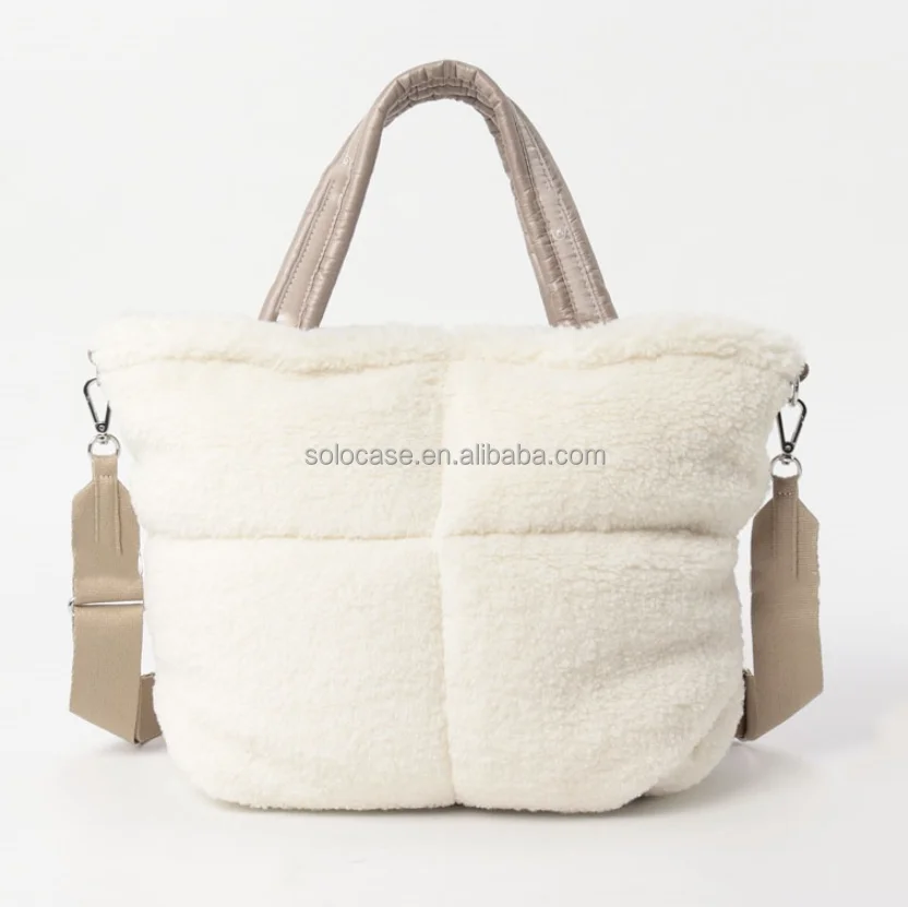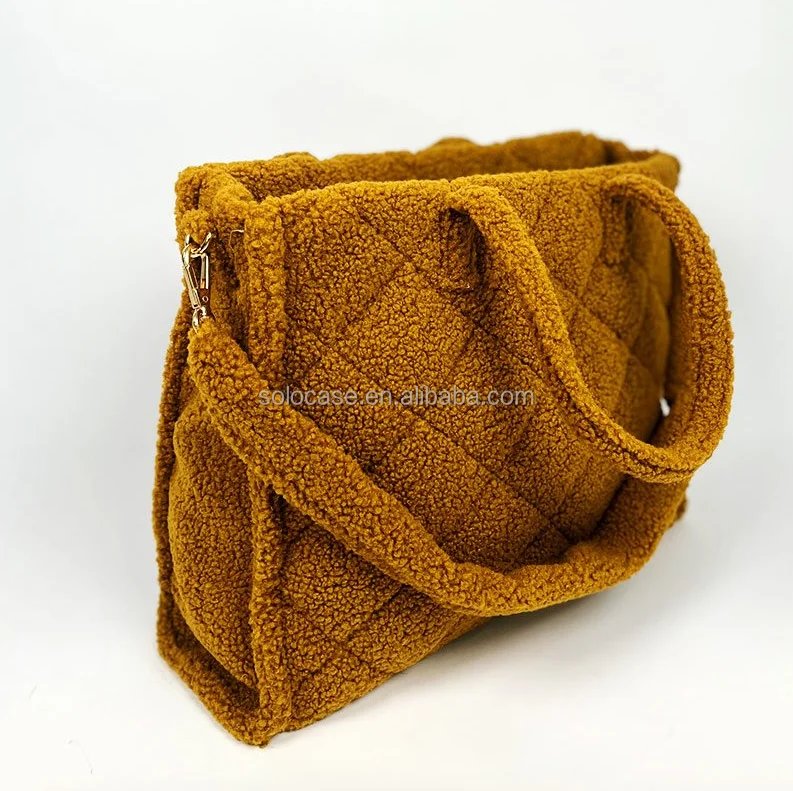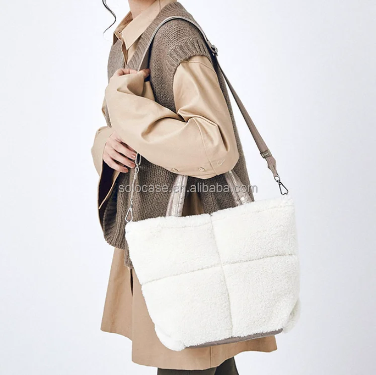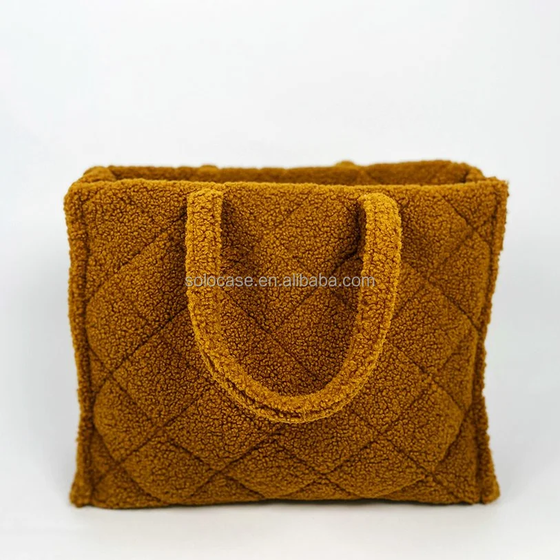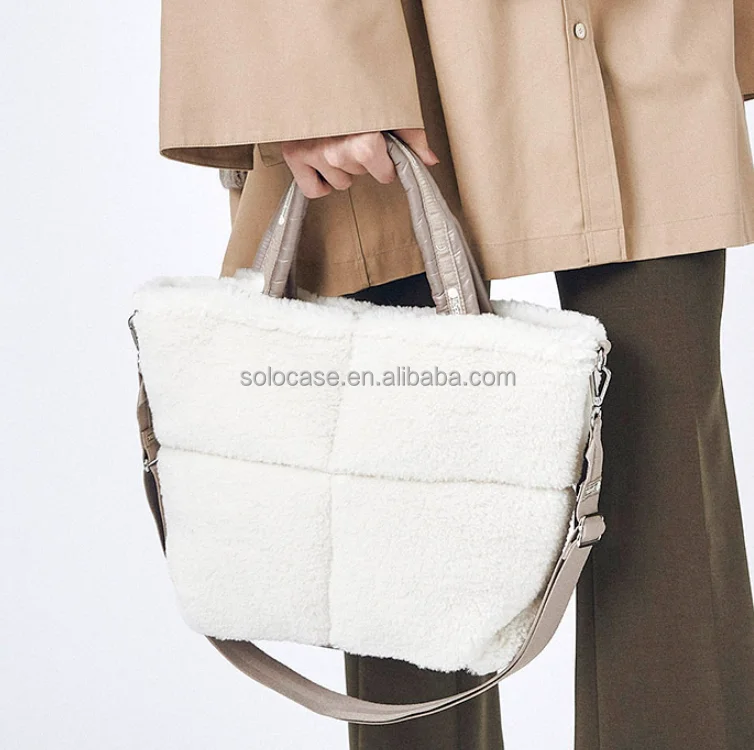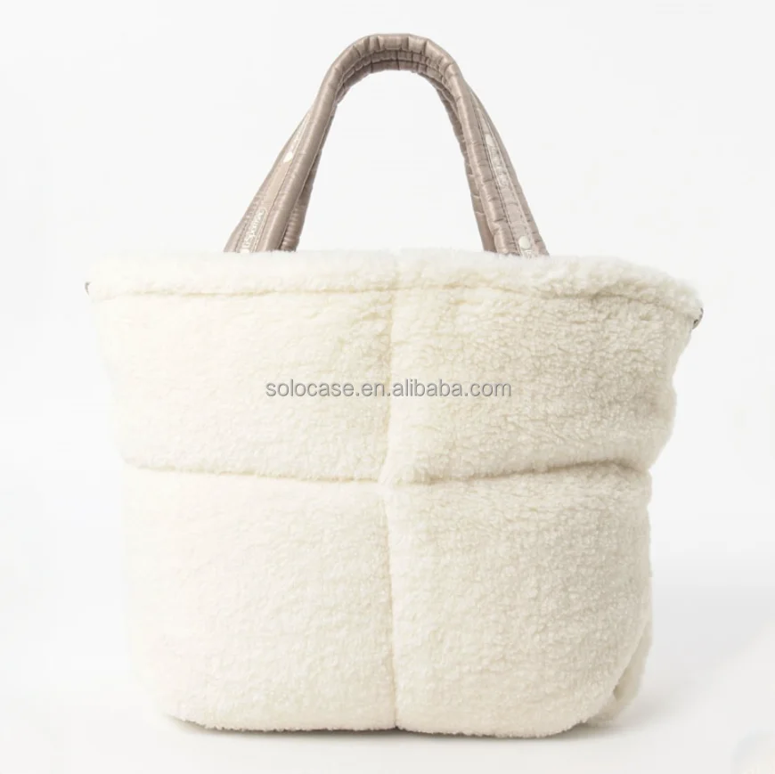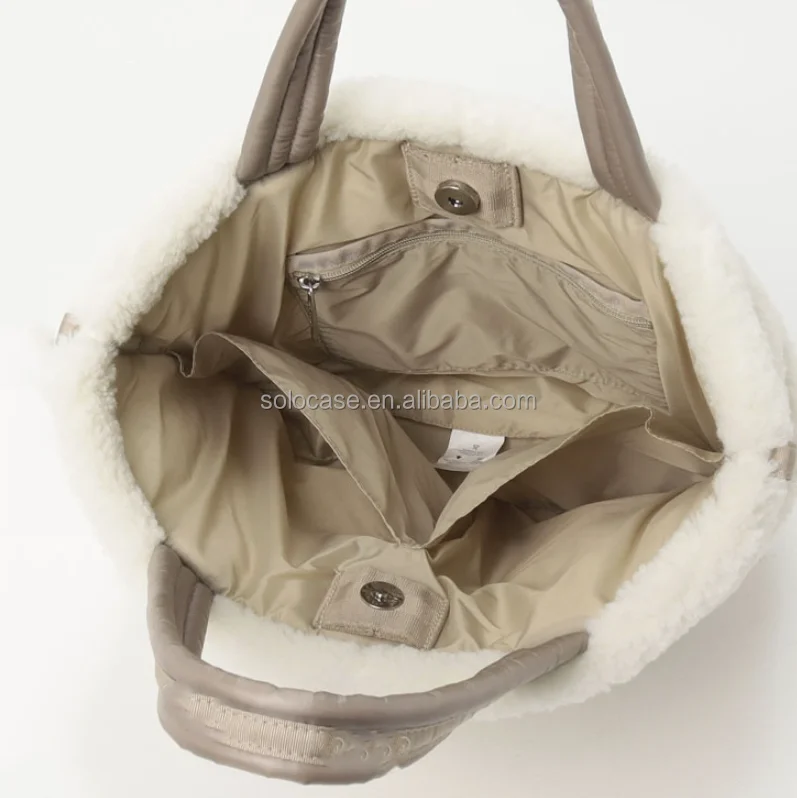 Custom Faux Fur Shoulder Shopping Bag for Women Teddy Tote Bag