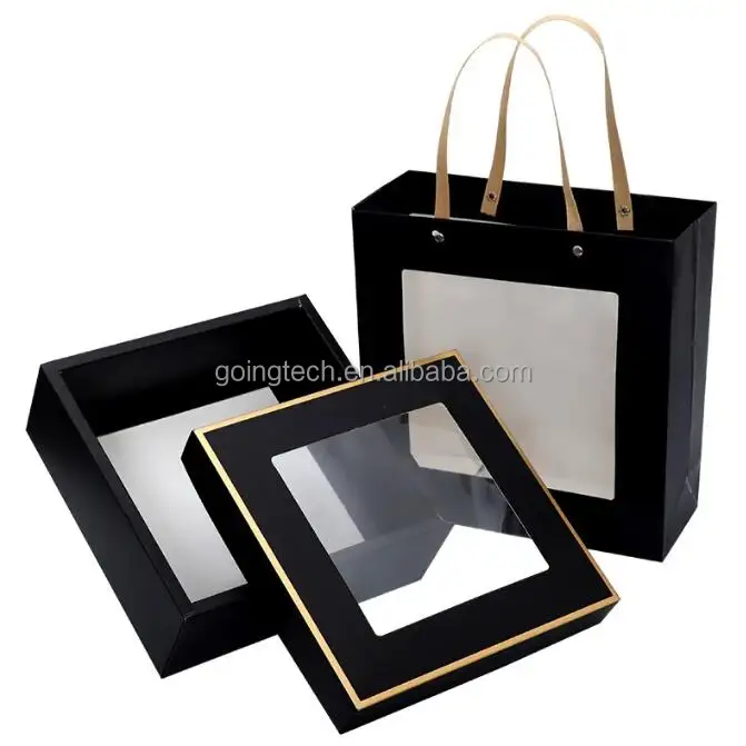 | Product Name | Flip Top PVC Window Black Rigid Cardboard Magnetic Closure Custom Packaging Square Gift Box |