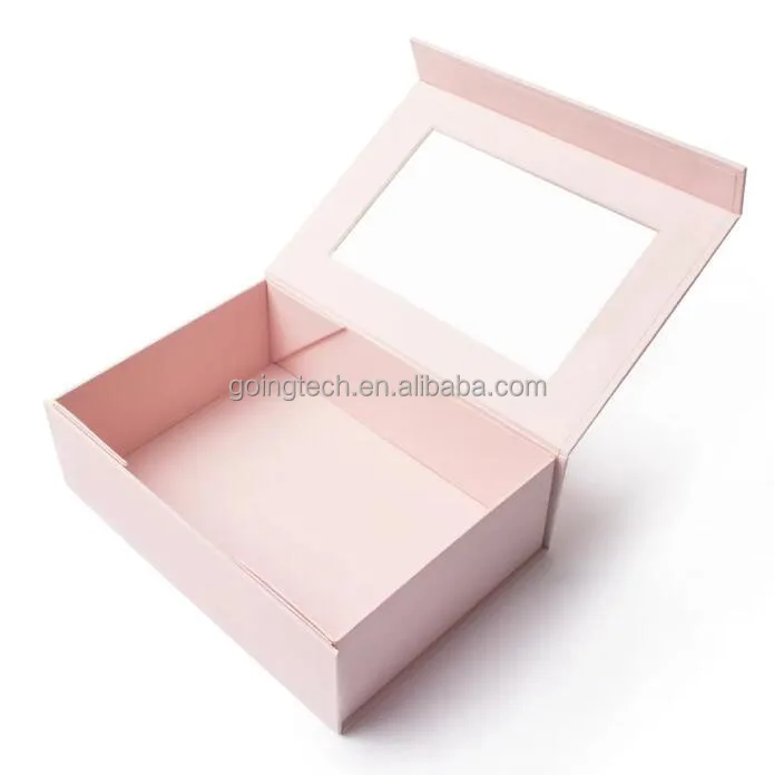 Flip Top PVC Window Black Rigid Cardboard Magnetic Closure Custom Packaging Square Gift Box