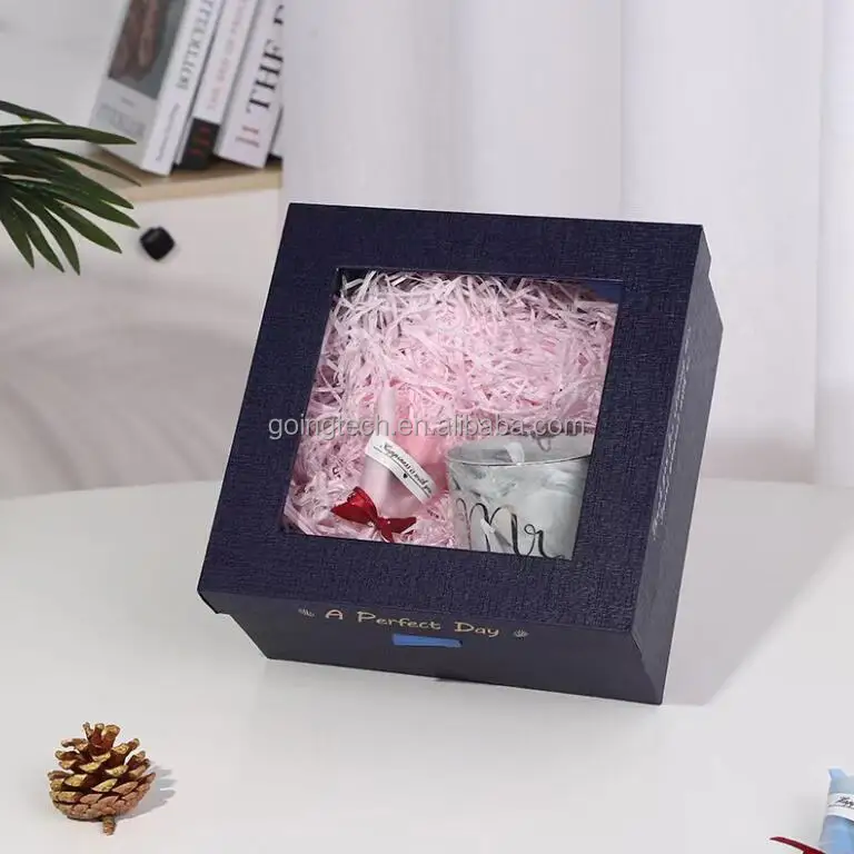 Luxury Unique clear PVC Front Window Cardboard Paper Corrugated Packing Box with Custom logo