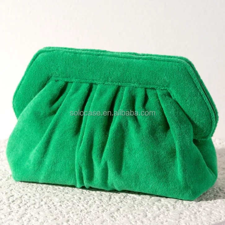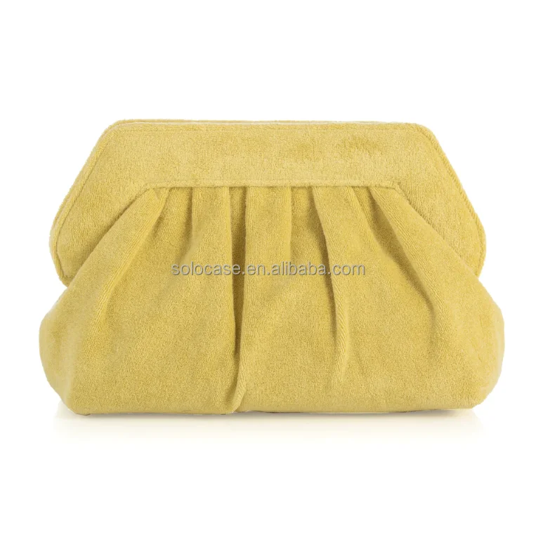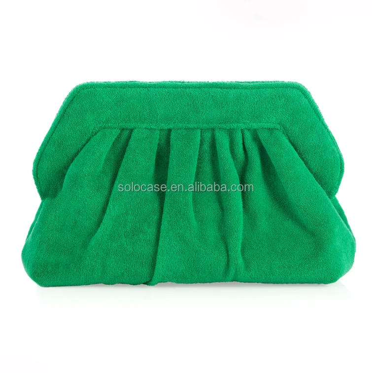 New Terry Clutch Evening Bag Elegant Pleated Satin Formal Handbag Simple Classy Terry Cloth Purse