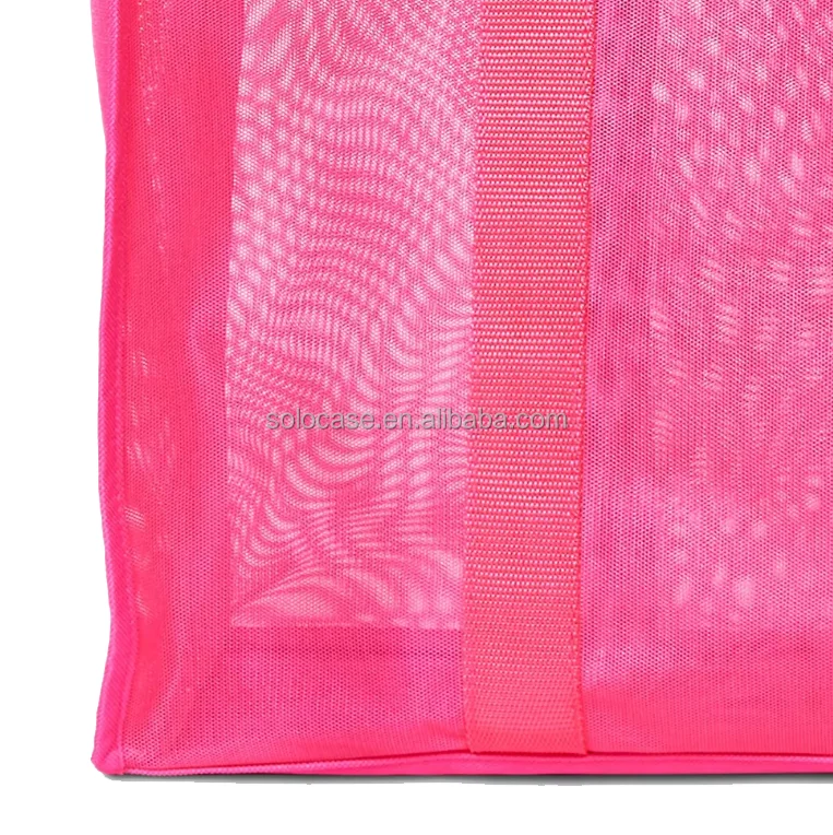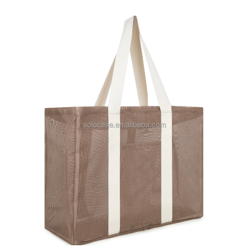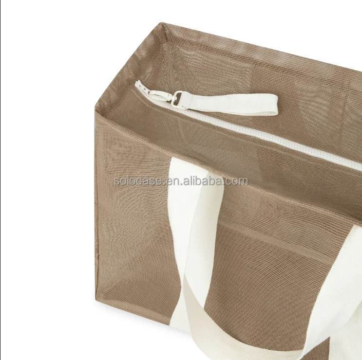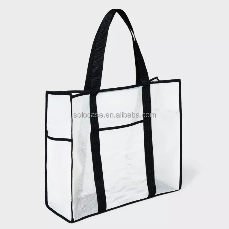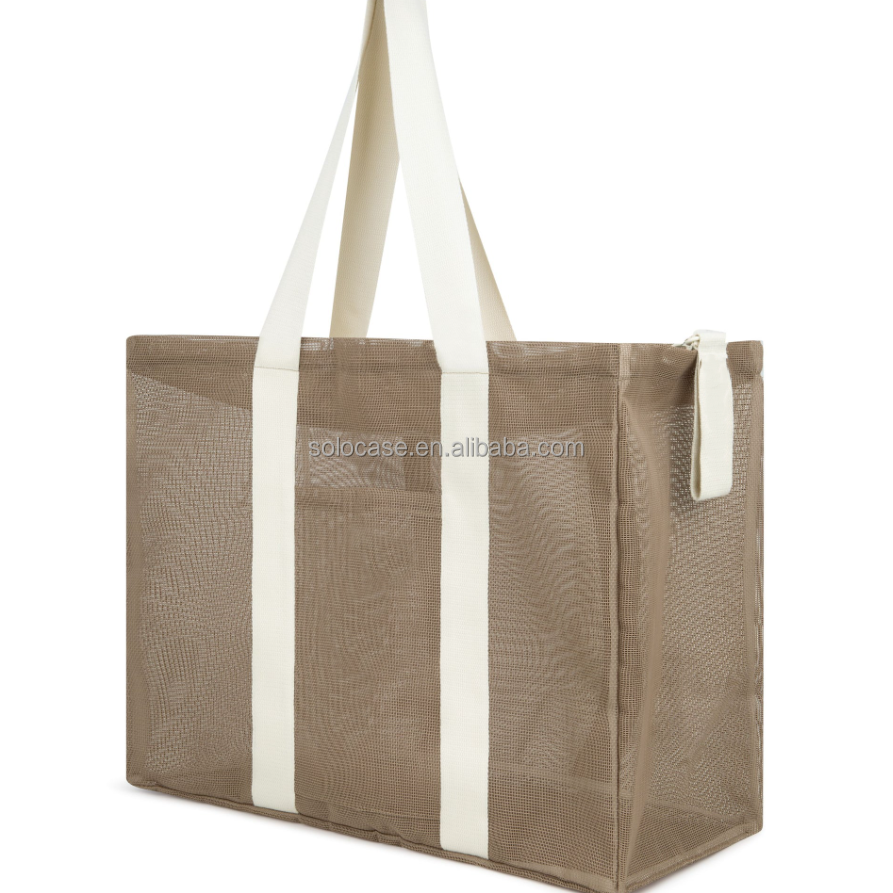Women’s Large Capacity Nylon Mesh Tote Bag Stitching PVC/Cotton/Polyester Lining Zipper Closure Customizable Logo Beach Tote