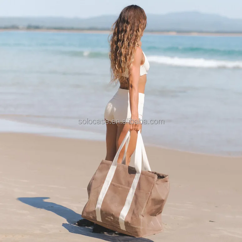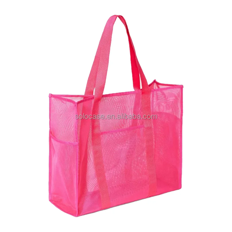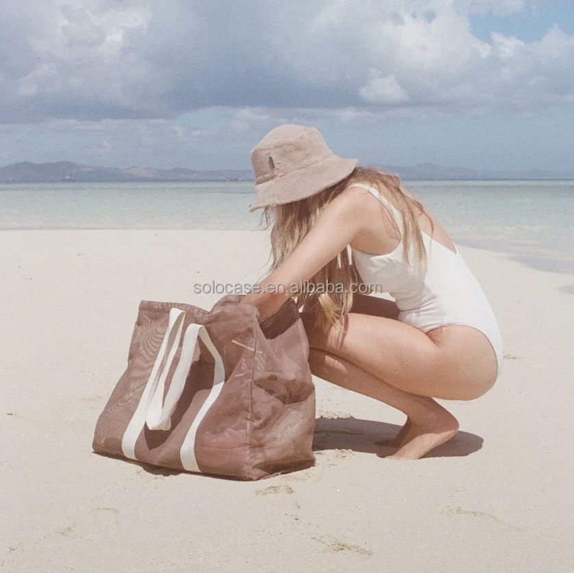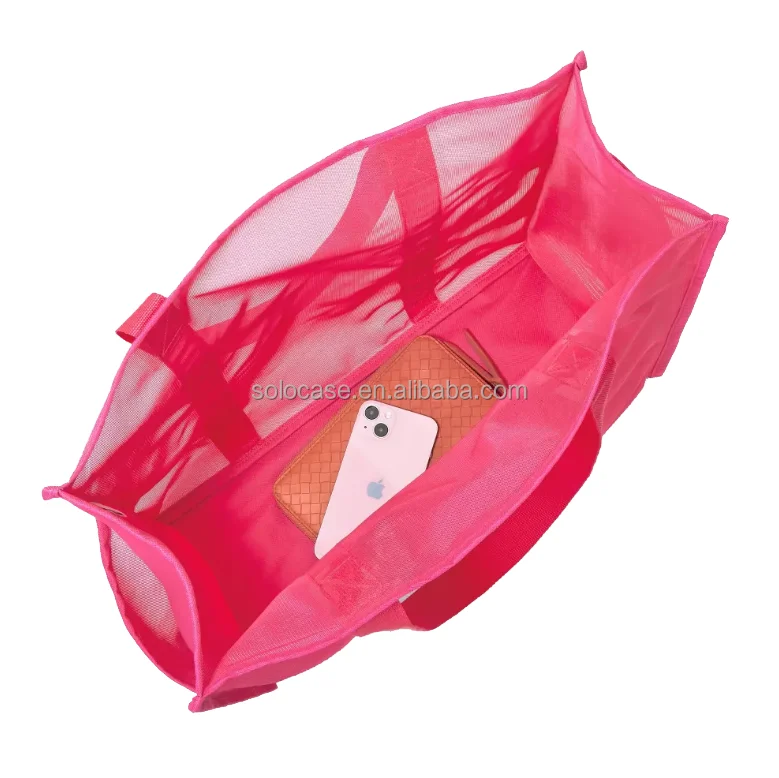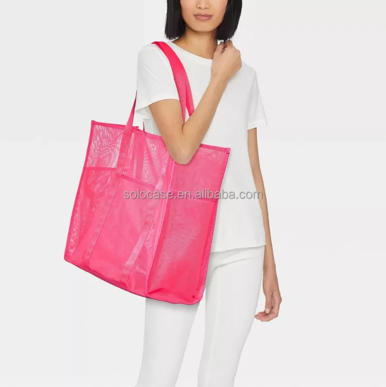 Women’s Large Capacity Nylon Mesh Tote Bag Stitching PVC/Cotton/Polyester Lining Zipper Closure Customizable Logo Beach Tote