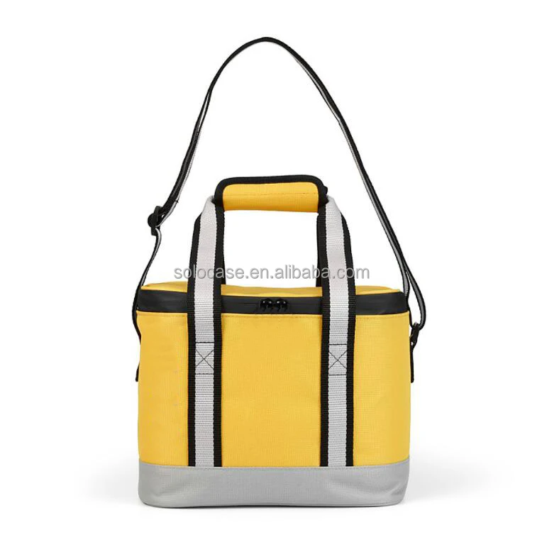 Waterproof Insulated Nylon Square Polyester Lunch Tote Bag Yellow Reusable Lunch Bag