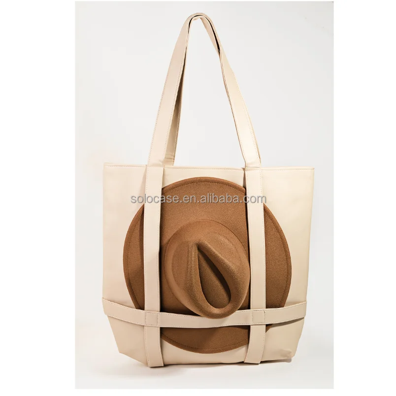 PU Leather Tote Bag Hat Holder Tote Bag Outdoor Handbag Hat Bag
