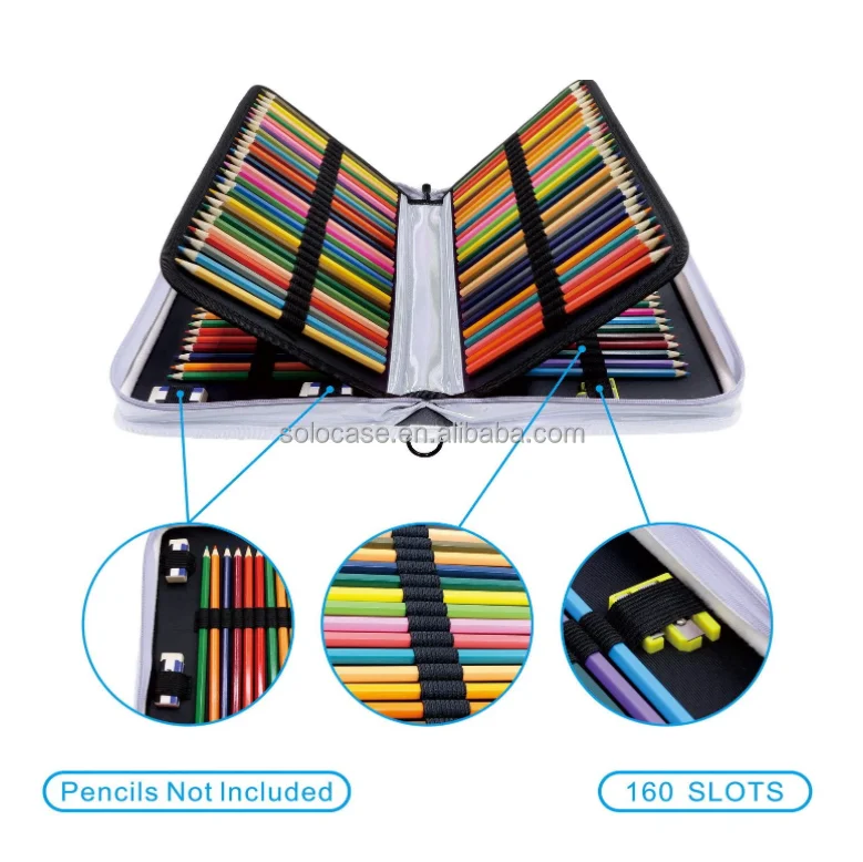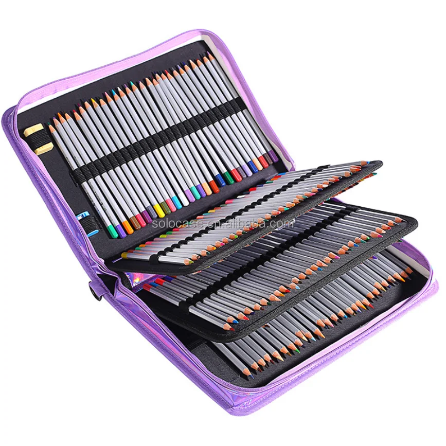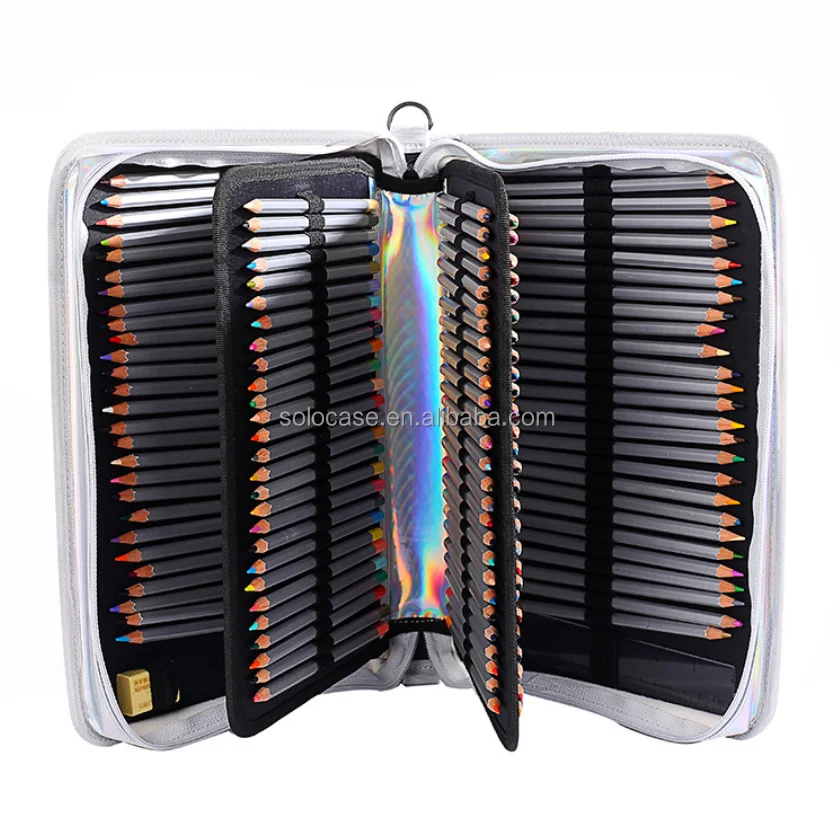 School Pencil Case with Holographic PU Leather 160 Holes Shoulder Strap-Special Purpose Bags & Cases