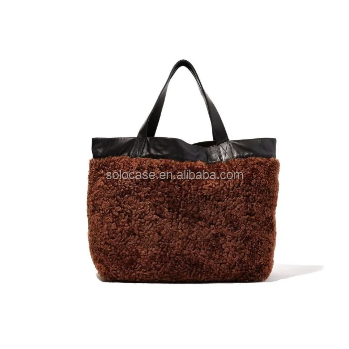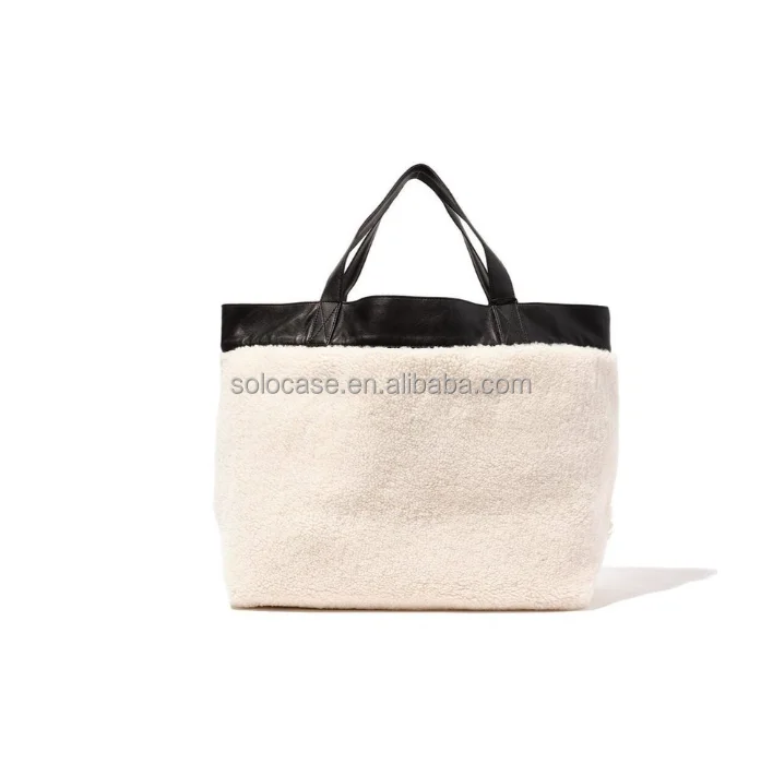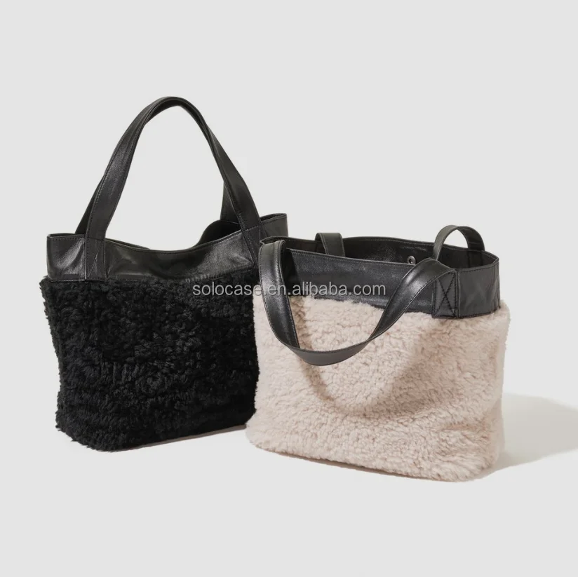 Sherpa Woolen Teddy Plush Tote Bag Travel Hand Shoulder Bag Vintage Portable Durable Handbags