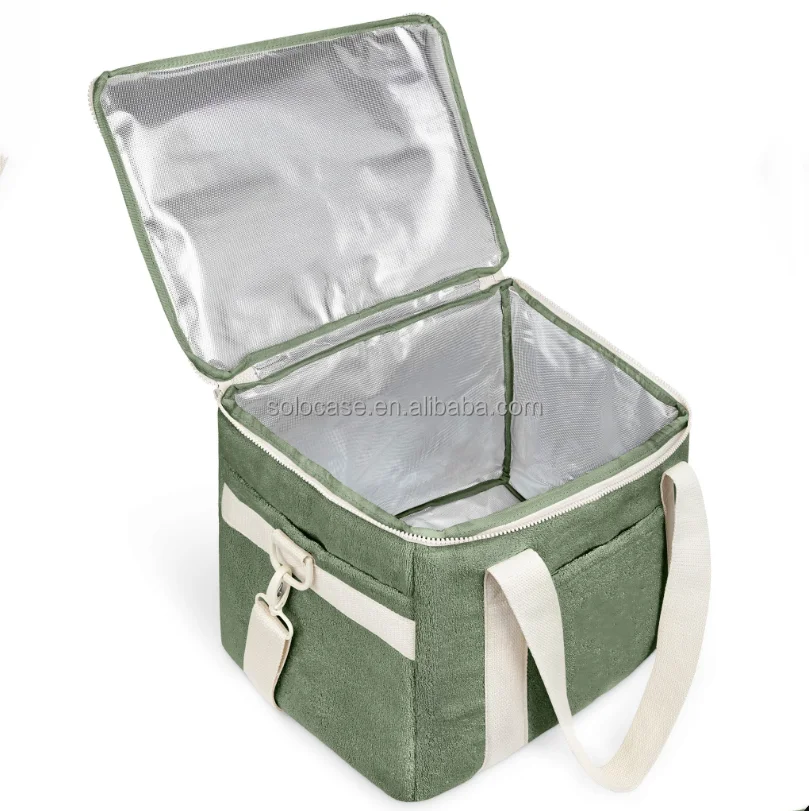 Terry Cloth Insulated Lunch Box Soft Terry Cloth Cooler Cooling Tote for Adult Men Women