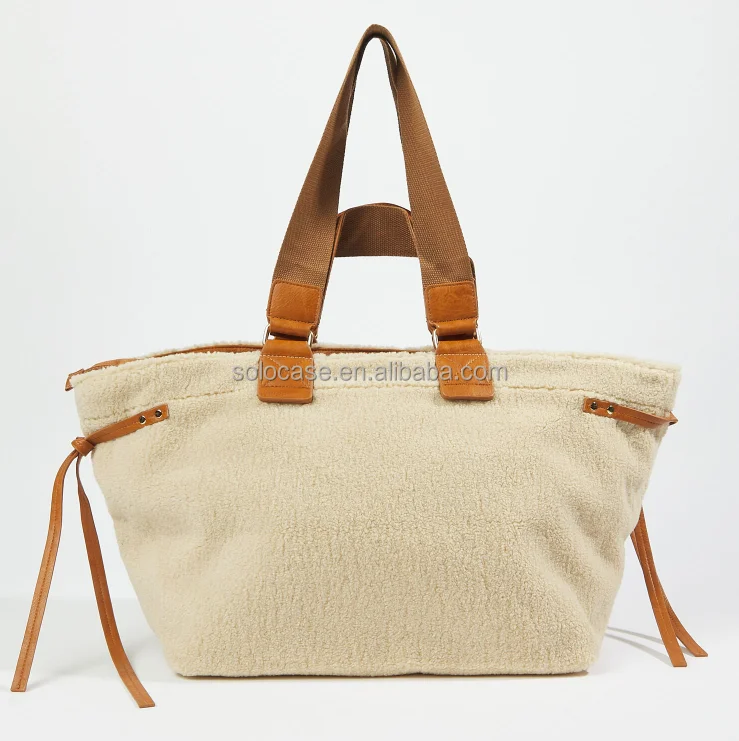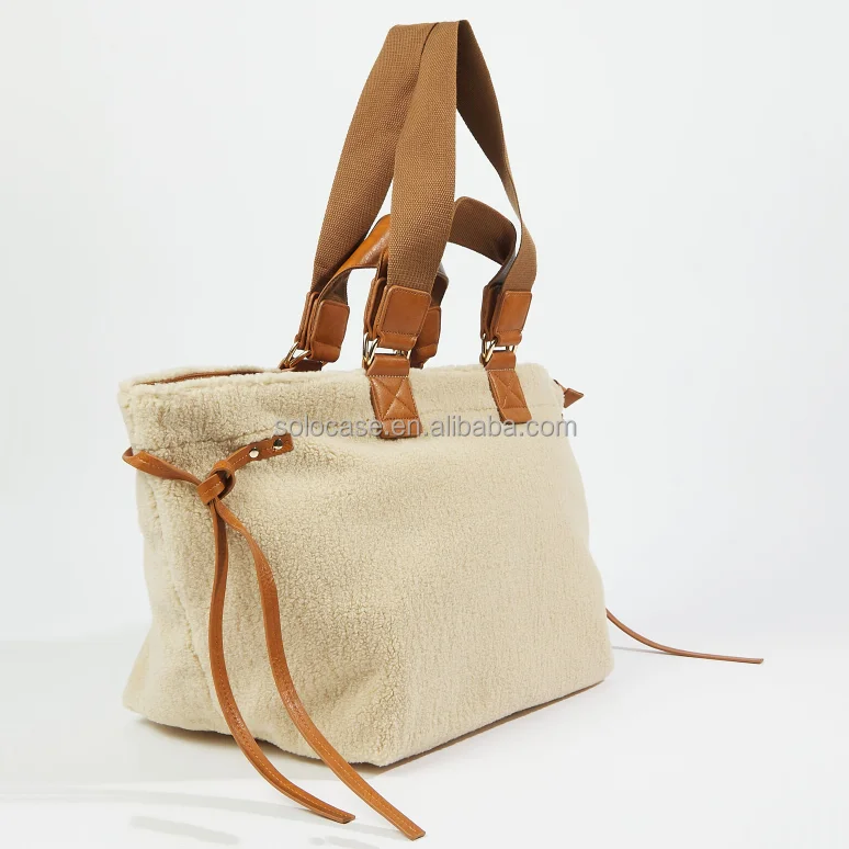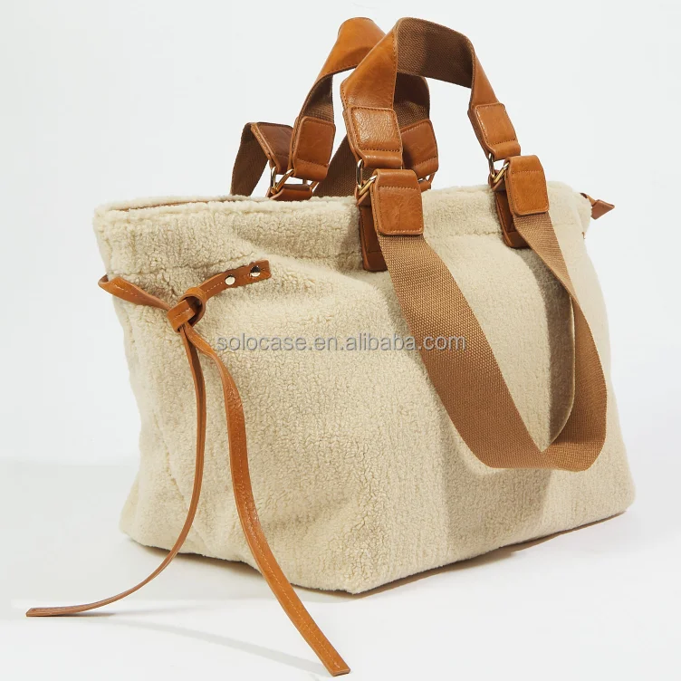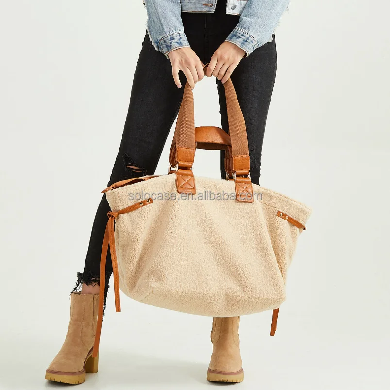Teddy Fur Material Travel Tote Bag New Design Large Capacity Winter Fashion Weekender Customizable Logo