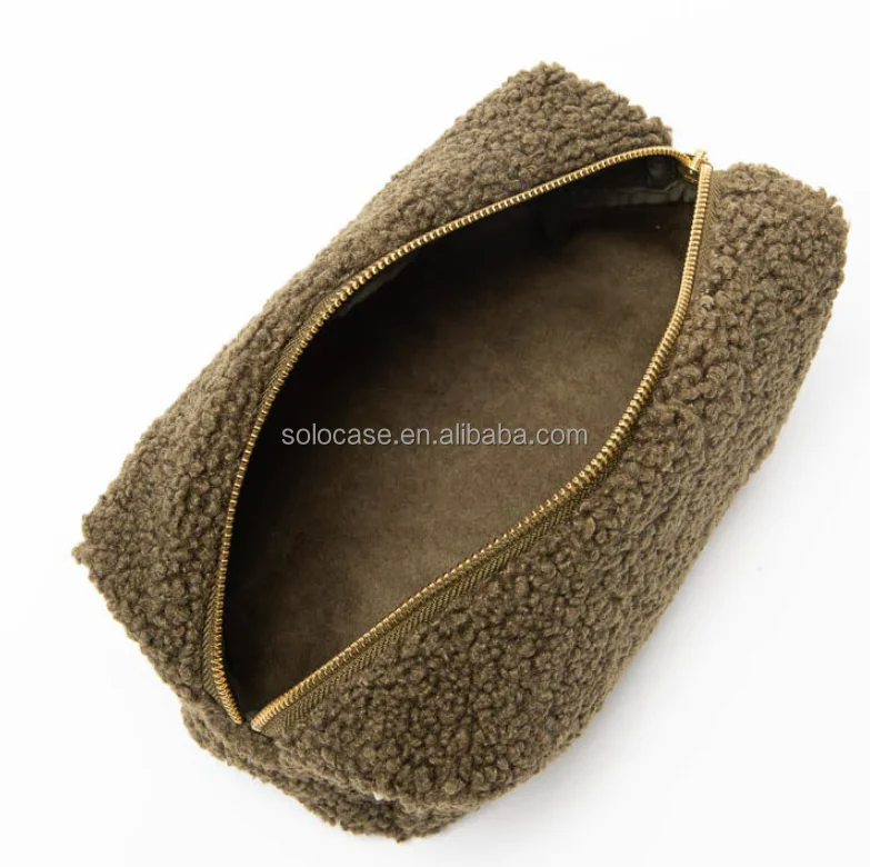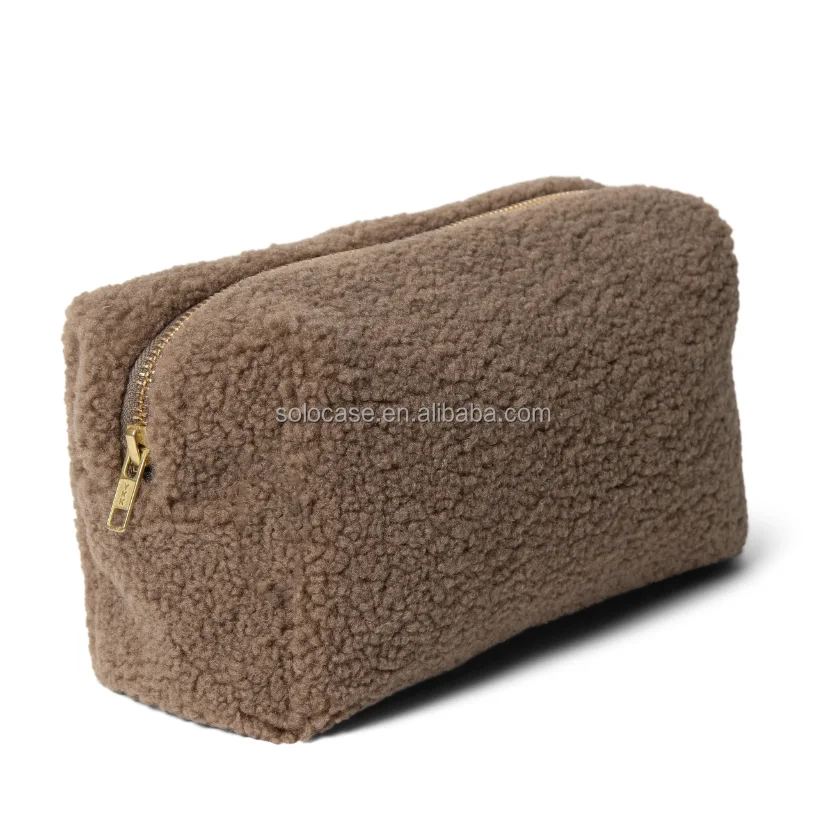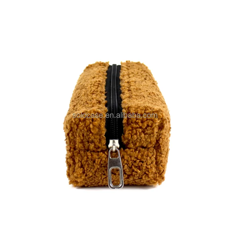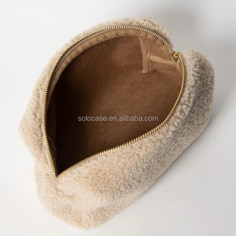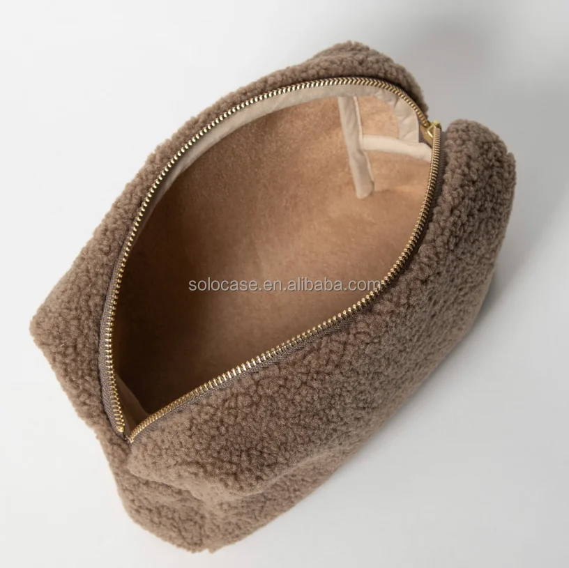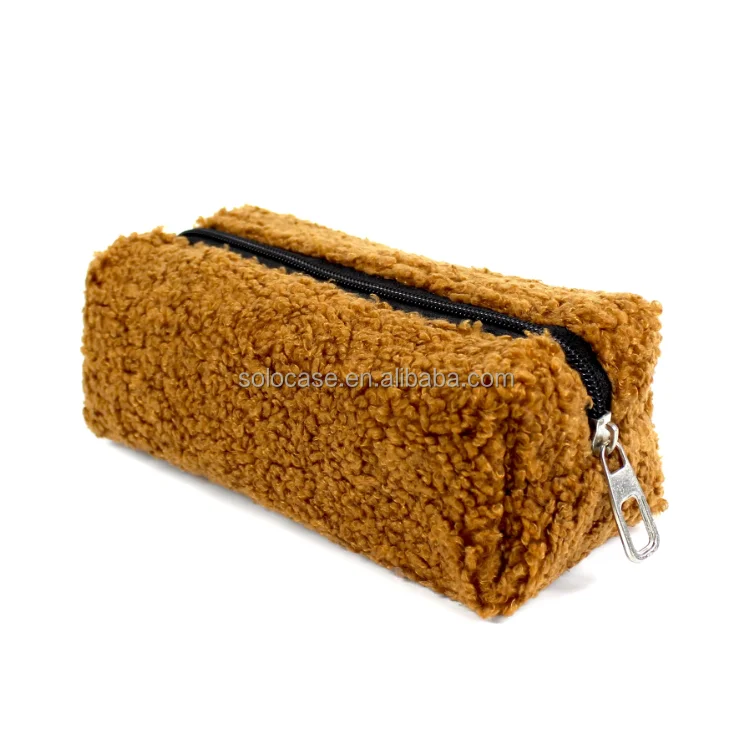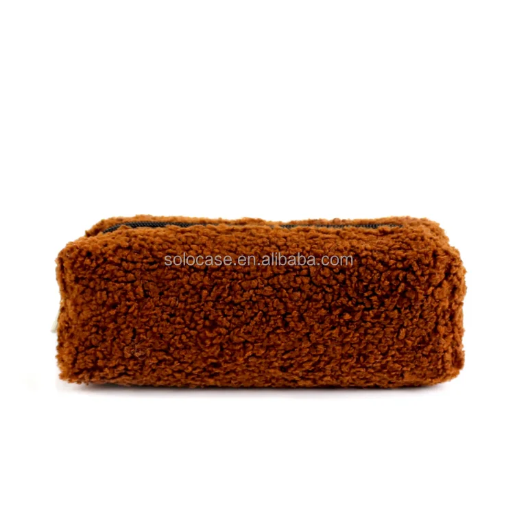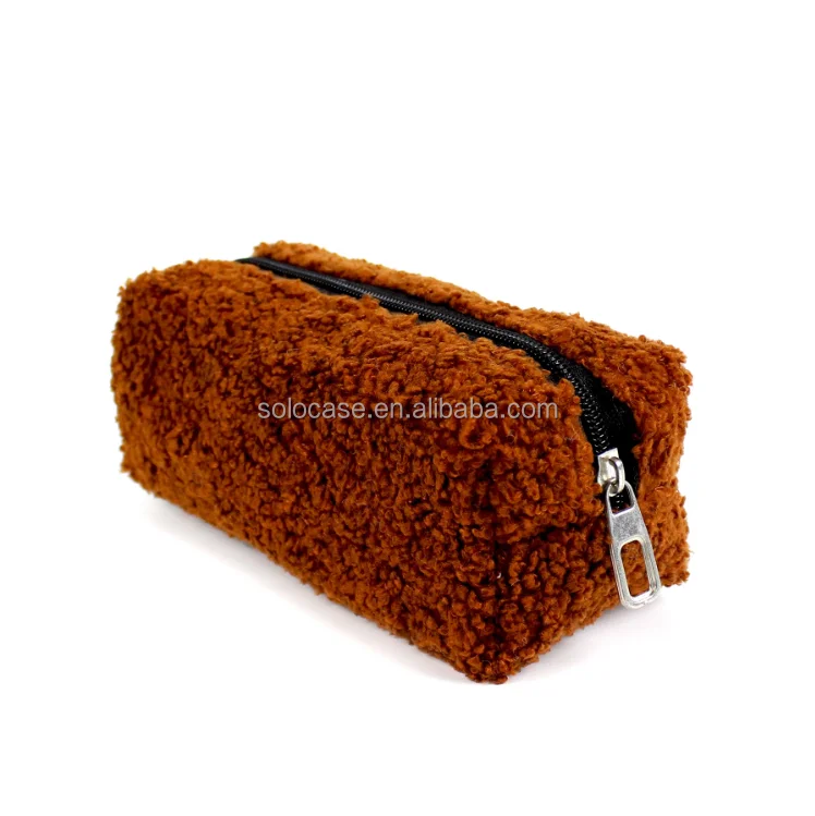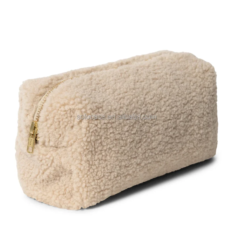 Teddy Travel Cosmetic Pen Bag Cute Soft Sherpa Material Large Capacity Zipper Case Custom Fashionable Portable