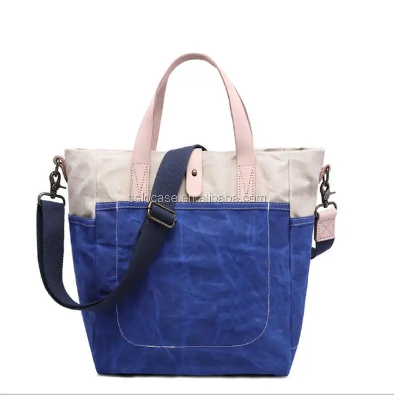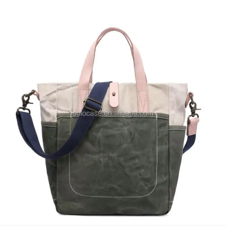 Waterproof Waxed Canvas Shoulder Tote Handbag with Dual Side Pockets
