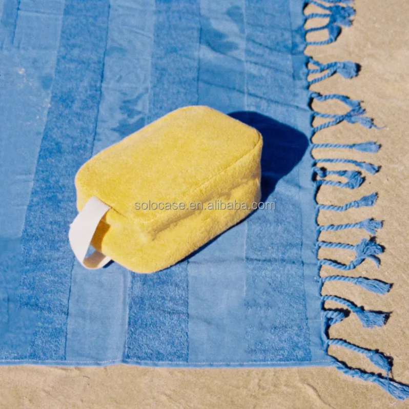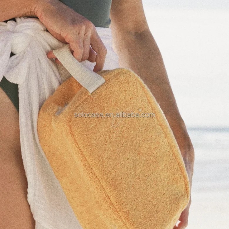 Woman Cotton Terry Makeup Bag Travel Terry Cloth Cosmetic Bag Puffy Padded Make up Bags for Women