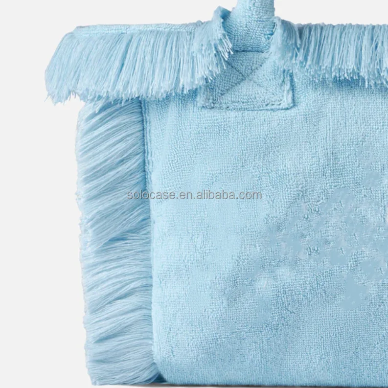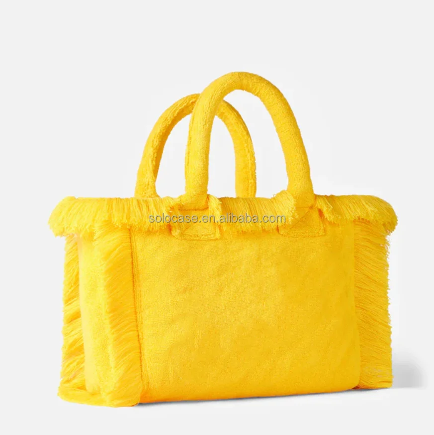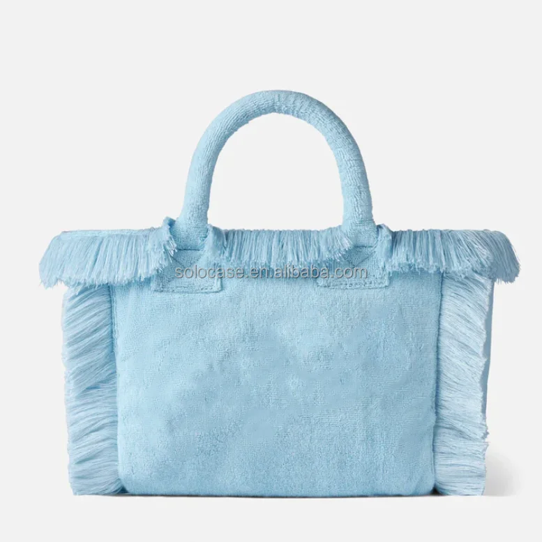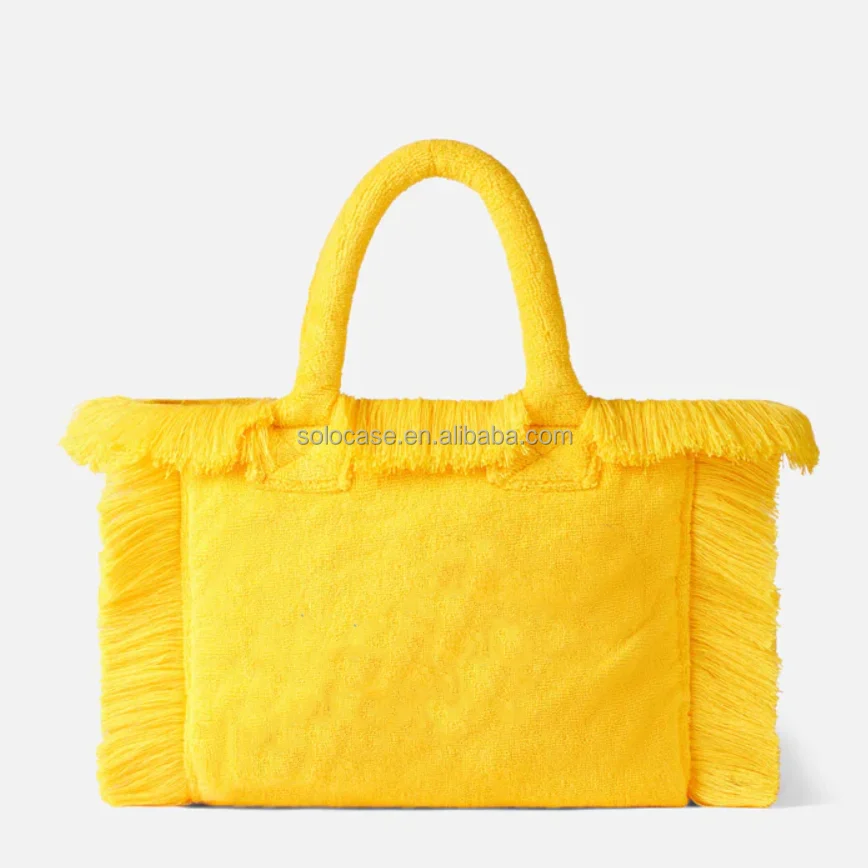 Women Terry Cloth Fringe Tote Bag Large Cotton Fringe Tote Bag