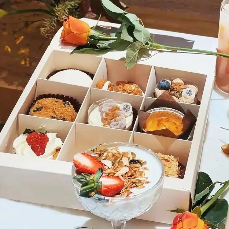 | Nome do produto | Custom Food Grade Material Donut Waffle Pastry Cookie Dessert Bakery Cake Paper Packaging Box |