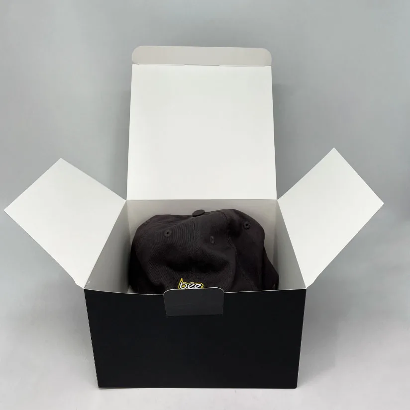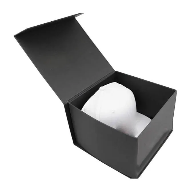 Custom Logo Rigid Cardboard Collapsible Black Folding Magnetic Hat Box Packaging Baseball Cap Gift Box