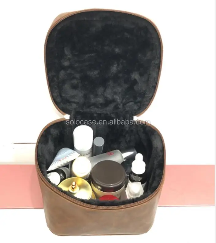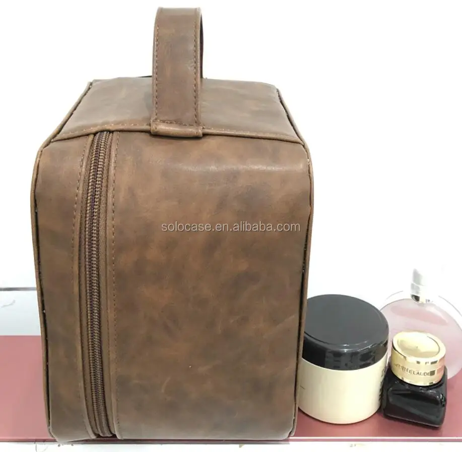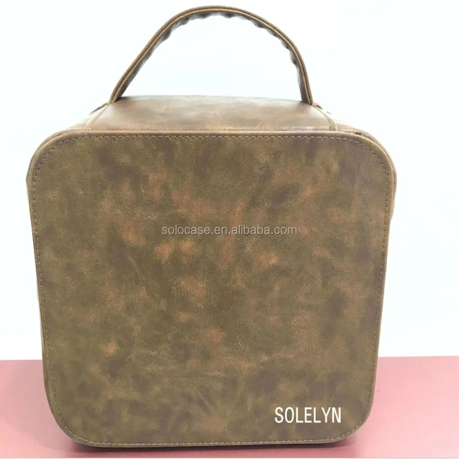 Adjustable Leather Train Case Makeup Cosmetic Organizer with Dividers Cosmetic Bags