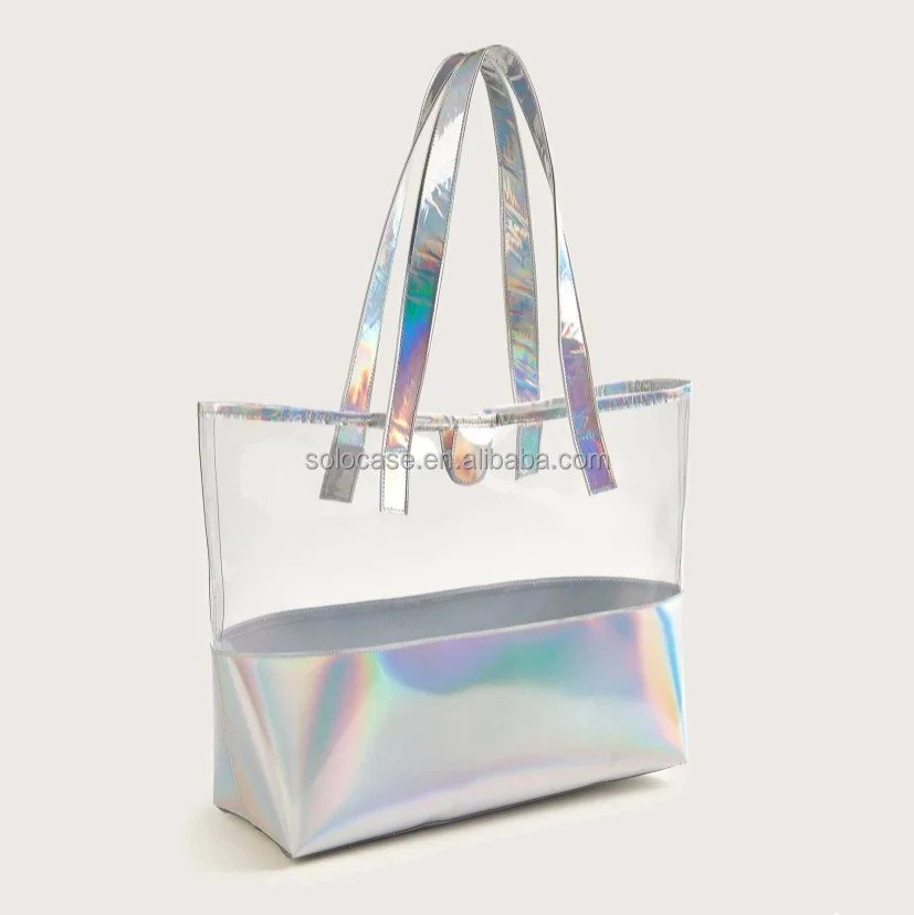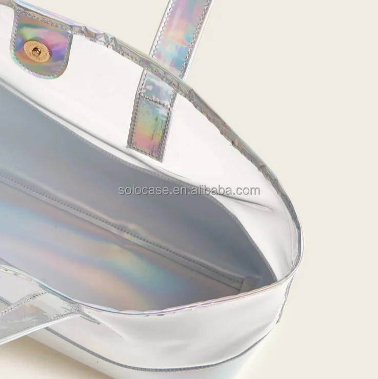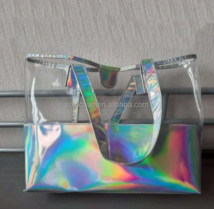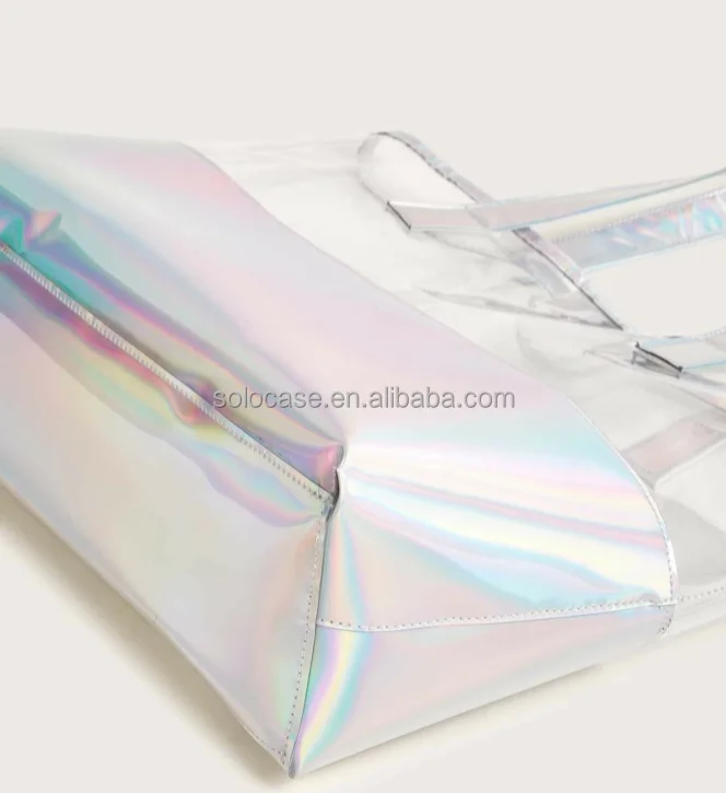 Hologram Handbag Casual Tote Simply Metallic in Holographic Rainbow Tote Beach Bag