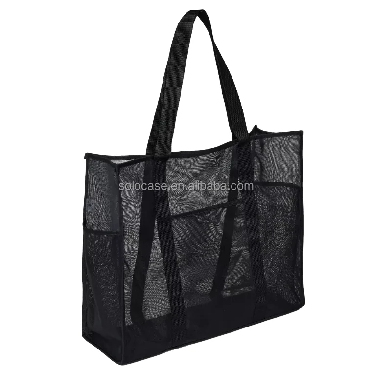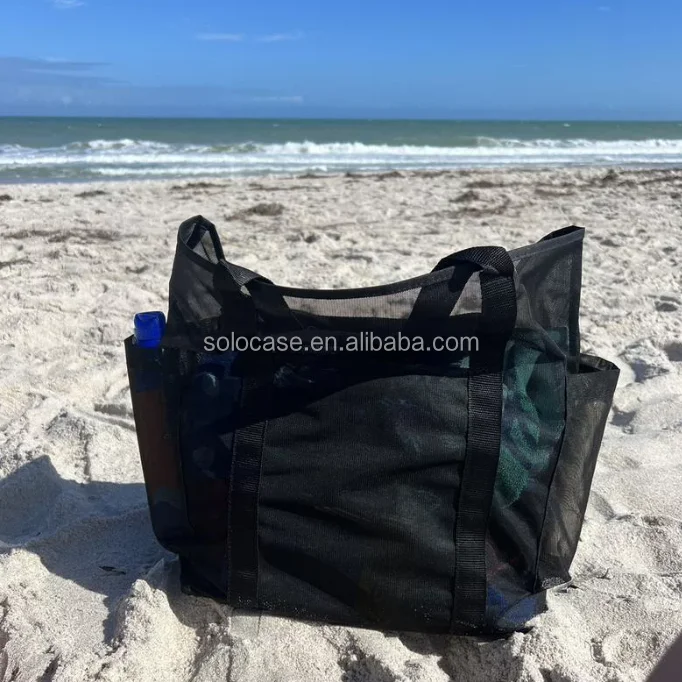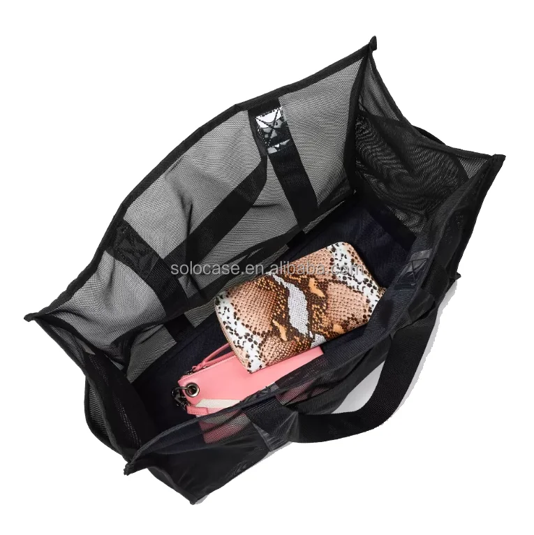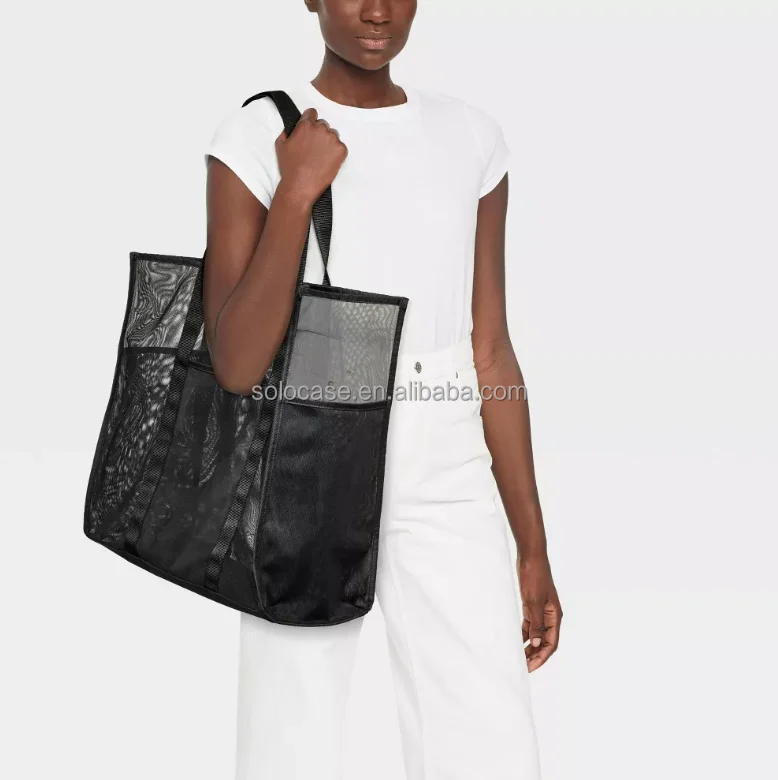 Fashionable Transparent Mesh Tote Beach Bag with Large Capacity PVC & Nylon Lining Zipper Closure Customizable Logo Pattern