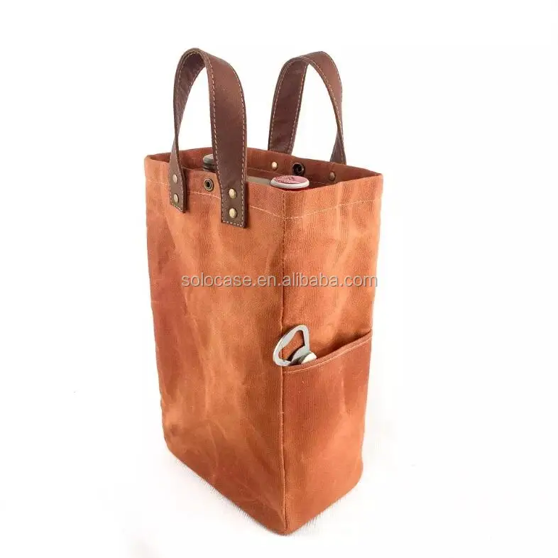 Multicolor Waxed Canvas Double Bottle Wine Cooler Bag One Size Insulated 2 BOTTLE WINE HOLDER