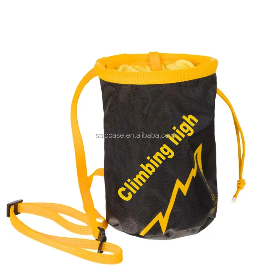 Polyester Large Chalk Bag Rock Climbing Bouldering Bucket Stand Bag for Lifting with Belt