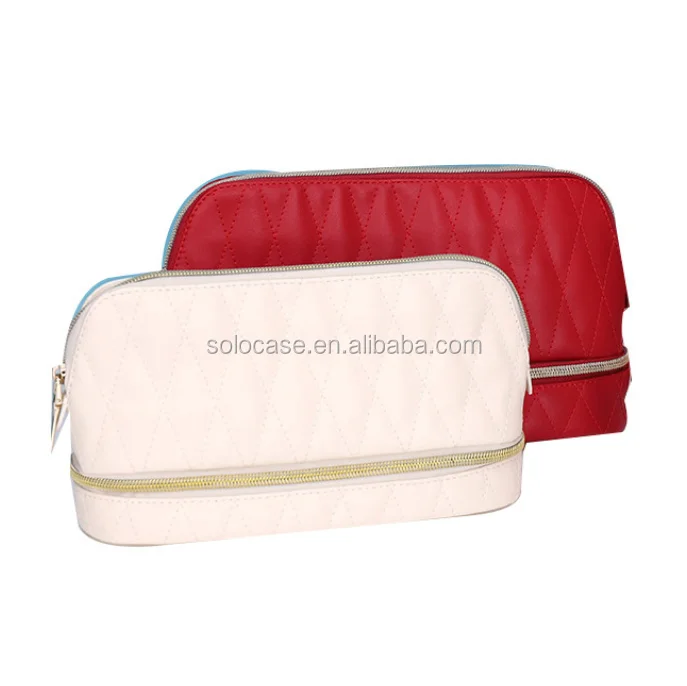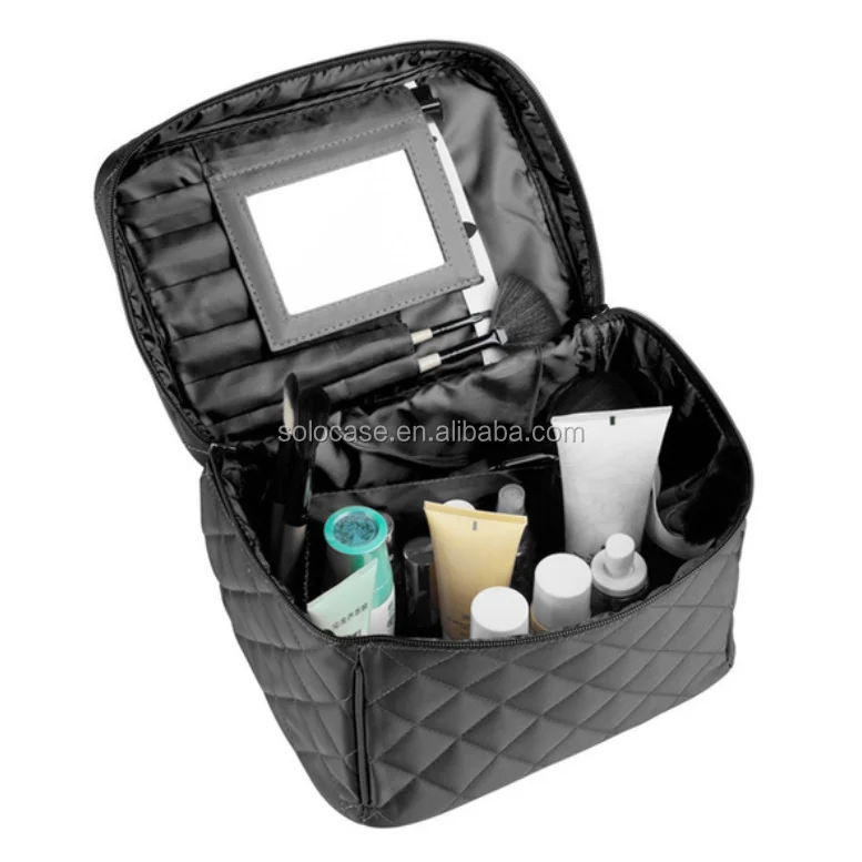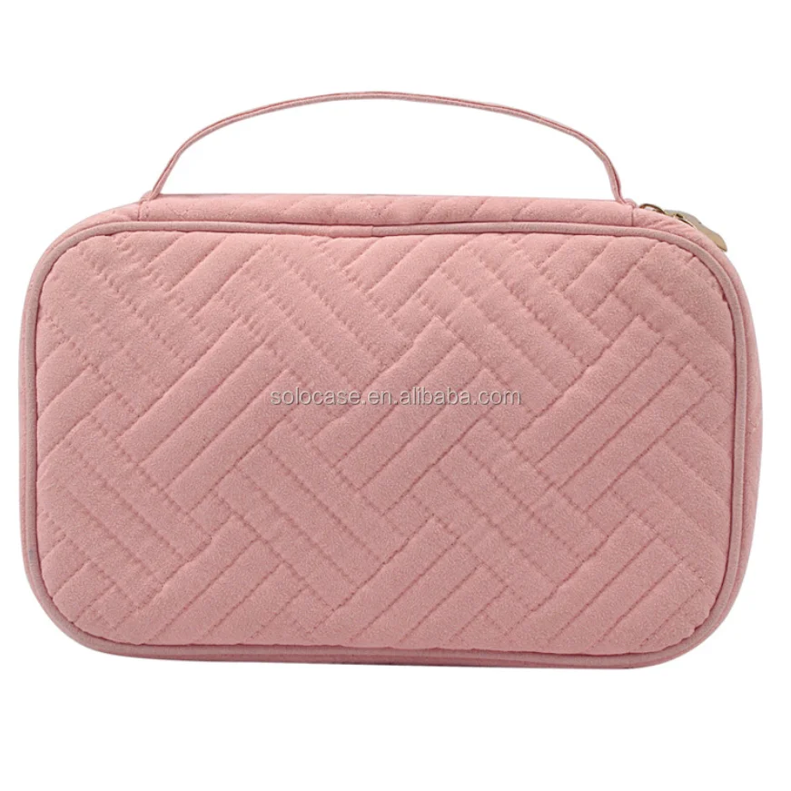 Quilted Soft Makeup Cosmetics Pouch Quilted Travel Toiletry Bag Cotton Puffy Cosmetic Bag