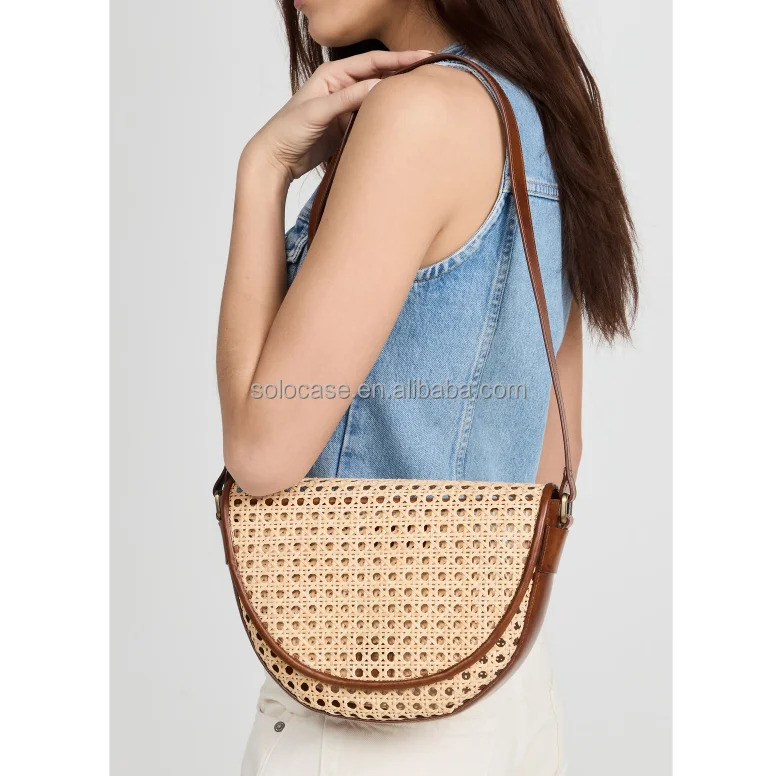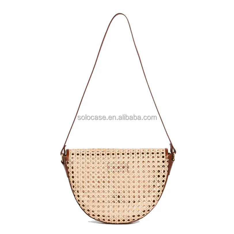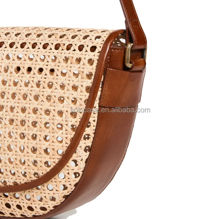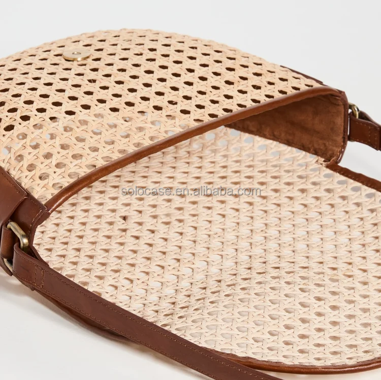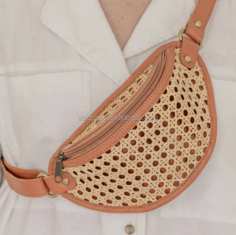 Bolsa de cintura pequena em rattan com corpo cruzado e cinto