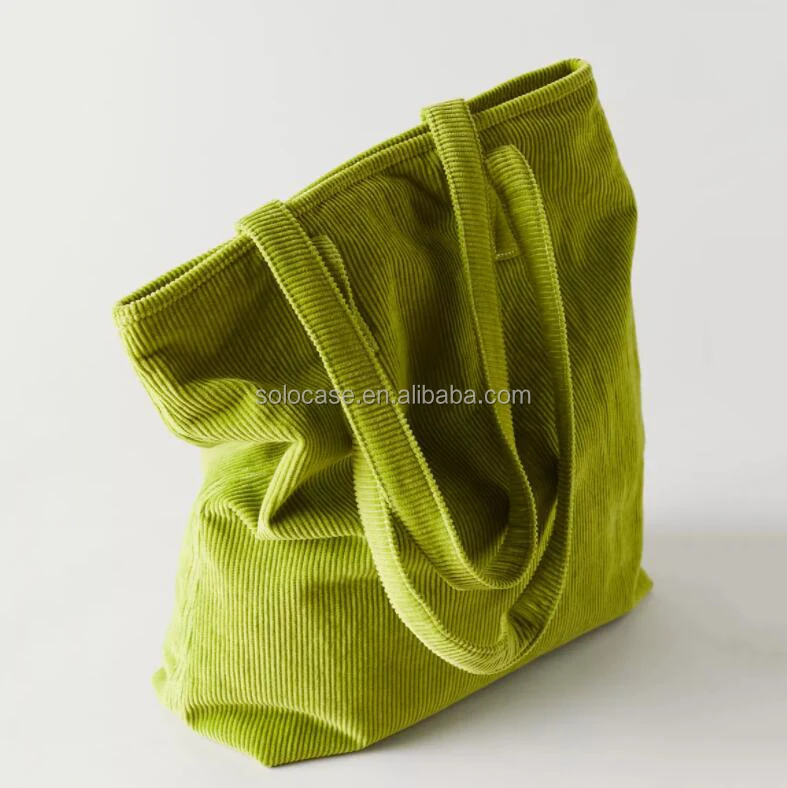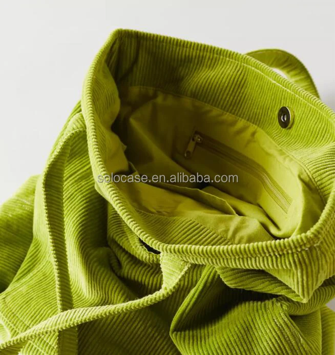 Fashion Soft Crossbody Grocery Tote Bag With Pocket and Zipper Corduroy Tote