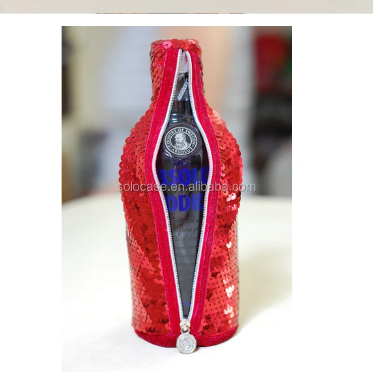 Sparkling 750ml Neoprene Sequin Cooler Bag Sequin Beer Bottle Holder and Cooler Sleeves