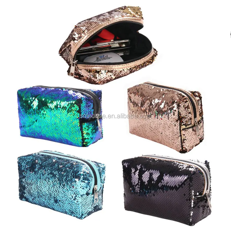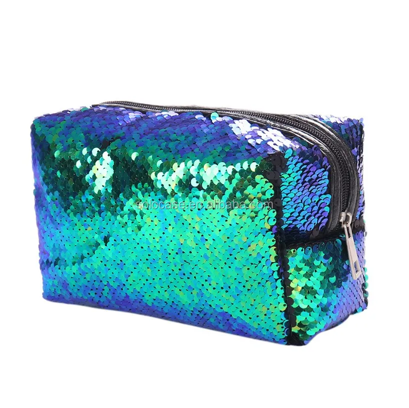 New Shiny Sequin Envelope Bag Women Cosmetic Clutch Handbag Waterproof Sparkly Reversible Sequins Glitter Cosmetic Bag