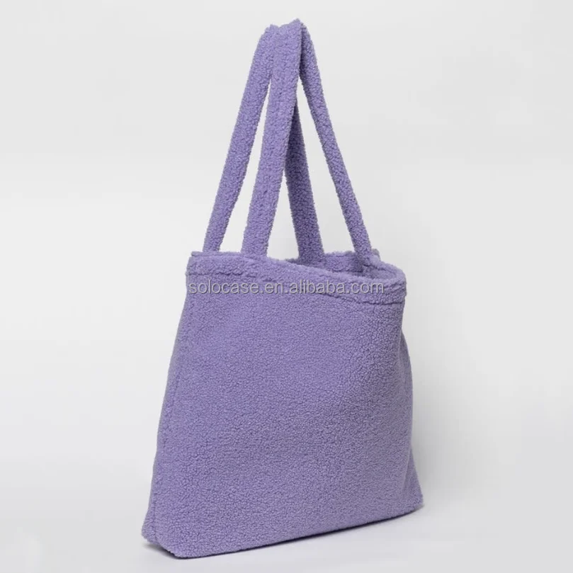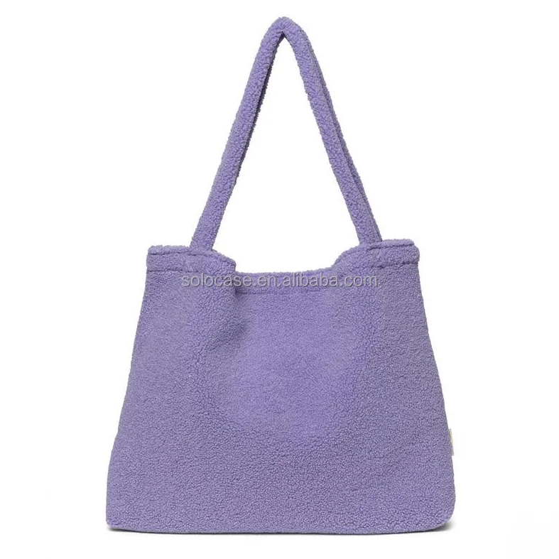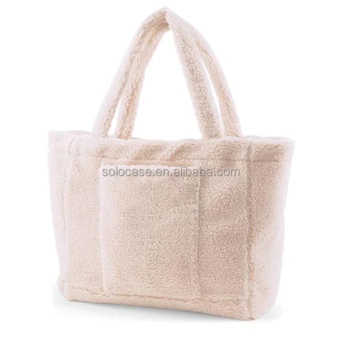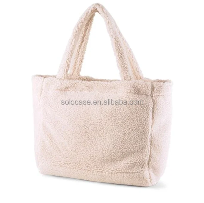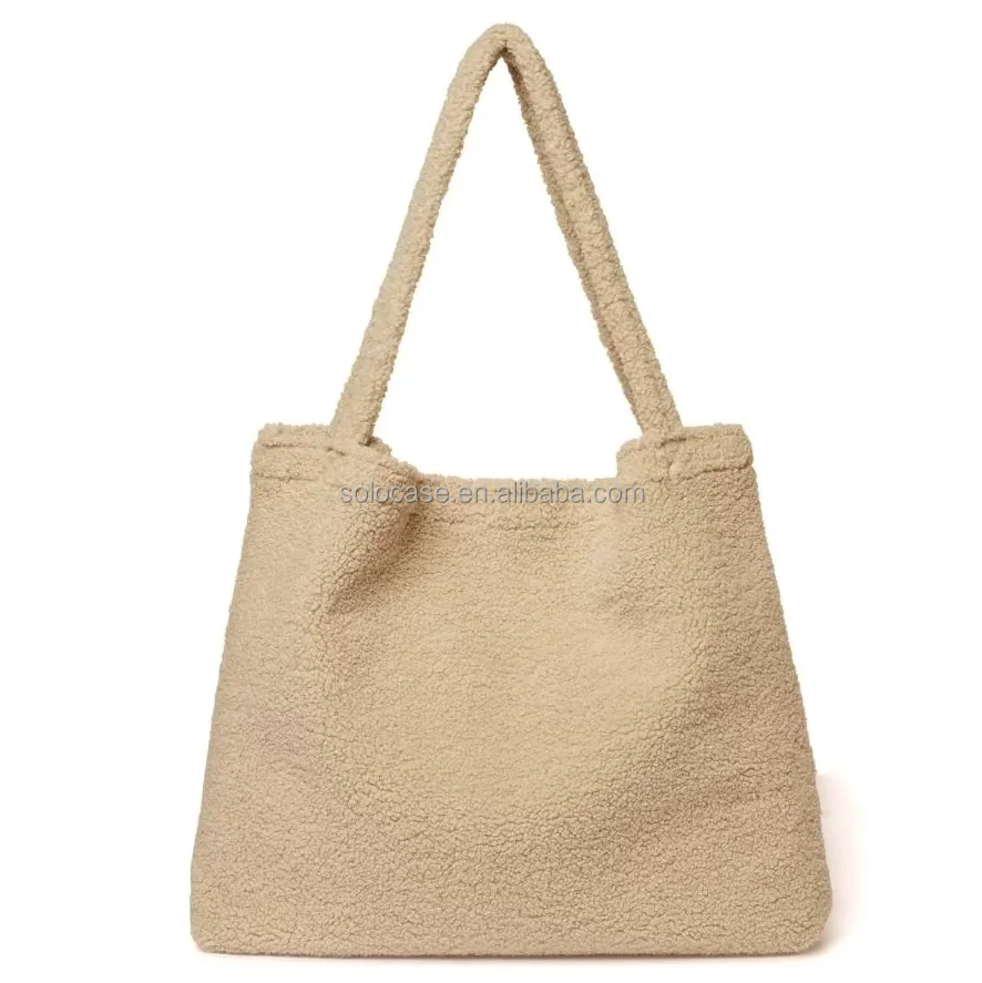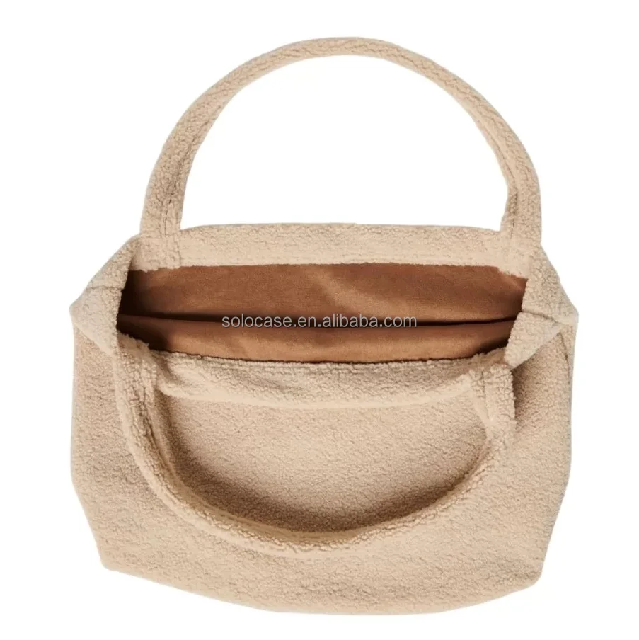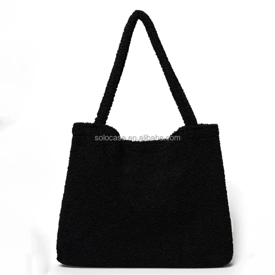 Teddy Handbags High Quality Fluffy Tote Bags Large Capacity Cotton Fabric Lining Printed Logo Feature Wholesale Winter
