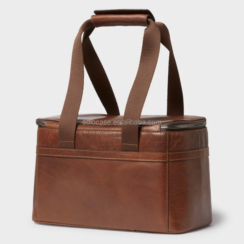 Waterproof Leather Picnic Cooler Tote Bag Aluminium Foil Thermal Ice Insulated Leather Lunch Bag