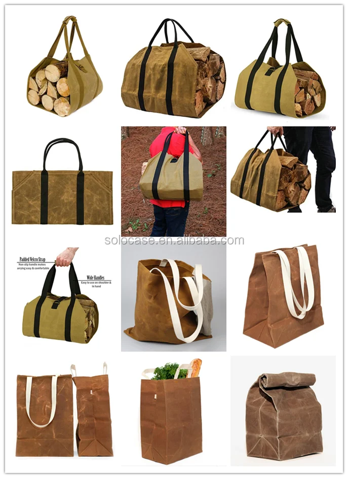 Waxed Canvas Log Carrier Firewood Tote Bag Water Resistant Special Purpose Case